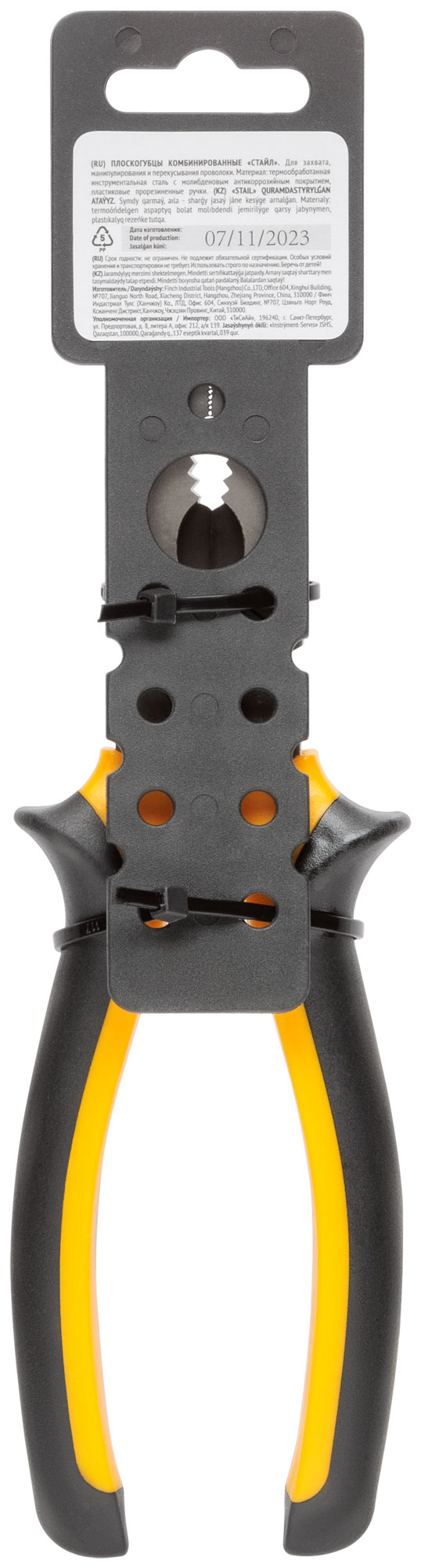 Купить Плоскогубцы комбинированные "Стайл", мягкие прорезиненные ручки, молибденовое покрытие 180 мм по доступной цене в Москве