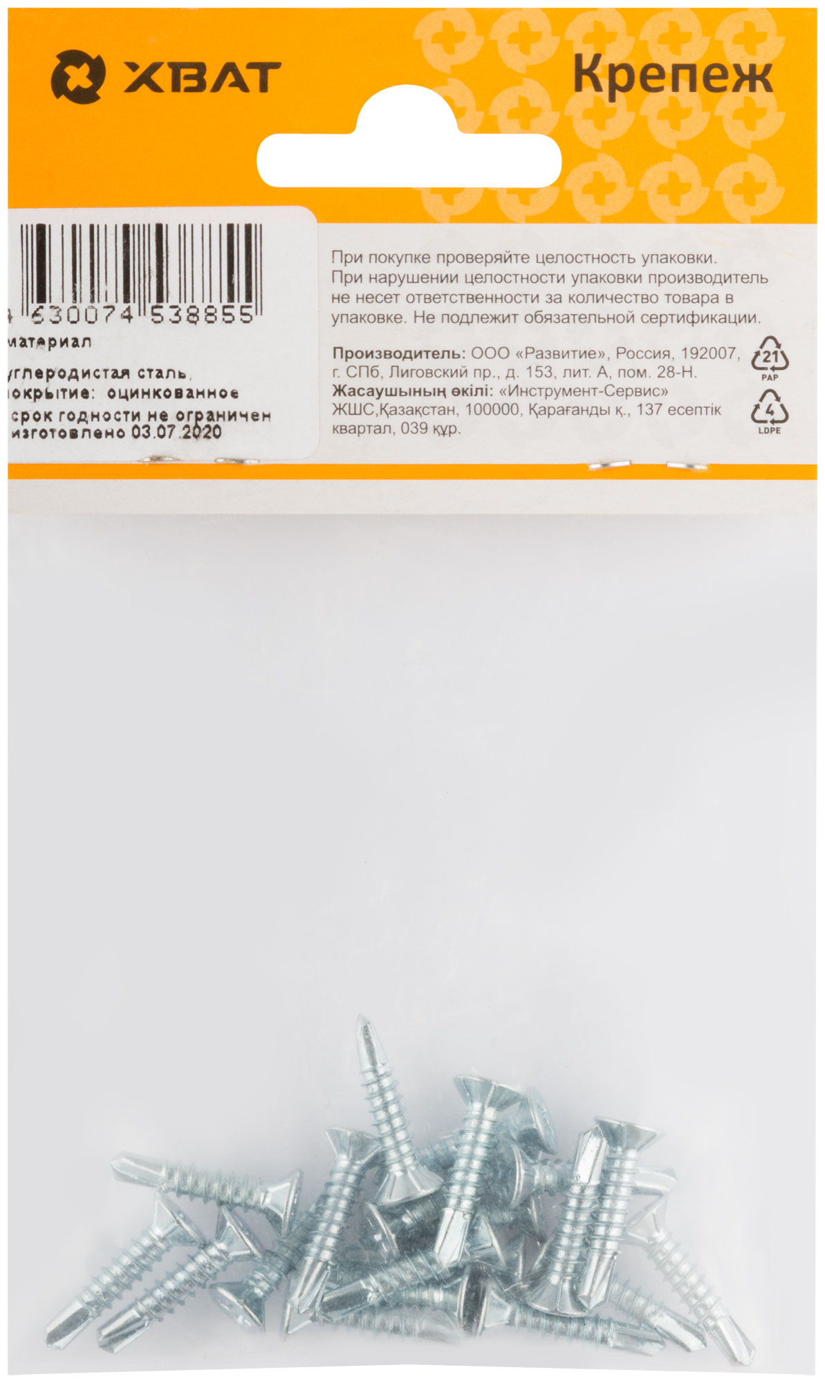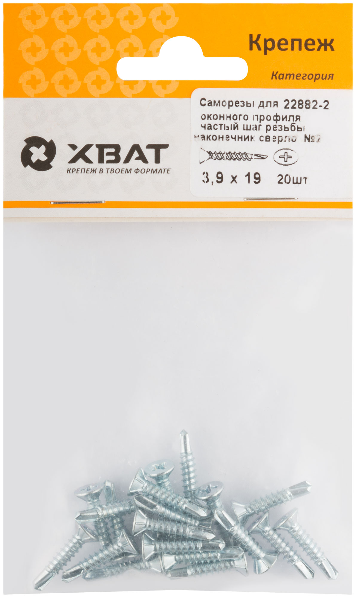 Купить Саморез для оконного профиля частый шаг резьбы, наконечник сверло №2 3.9х19 20 шт. (фасовка) по доступной цене в Москве
