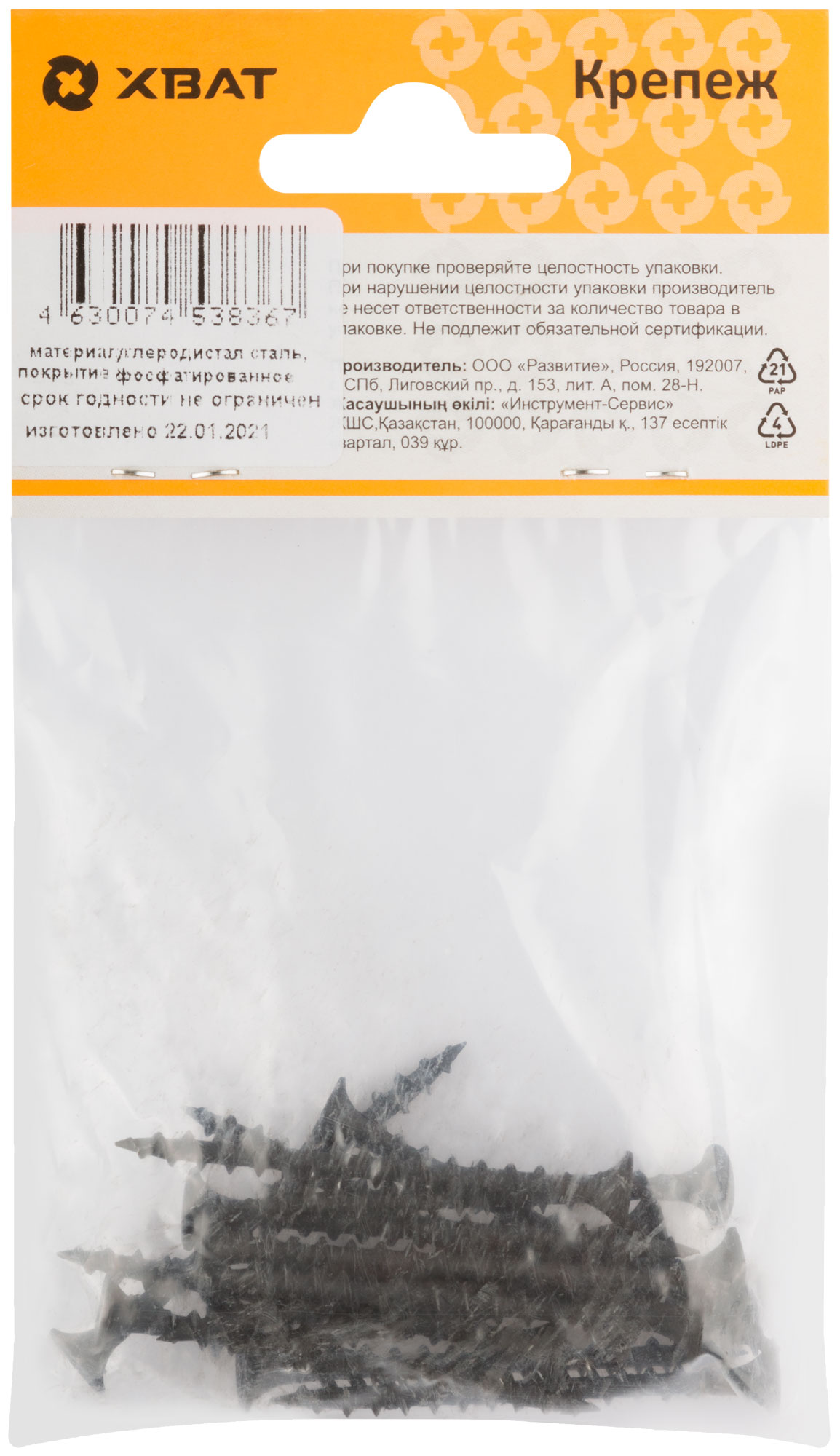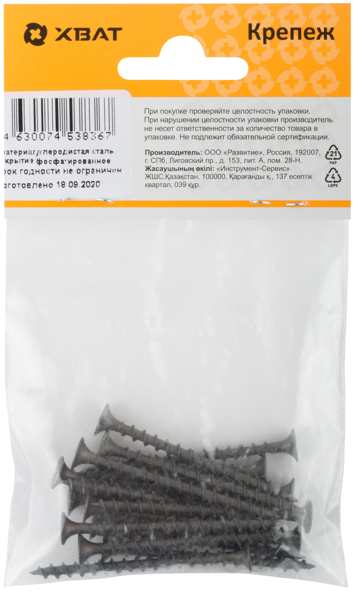 Фосфатированный. Предназначен для крепления материалов к основанию без предварительного сверления. Основная область применения – крепление листов гипсокартона к деревянным конструкциям. Острый наконечник, редкий шаг резьбы и рожковая головка идеально подходят для крепления гипсокартонных плит даже при небольшом крутящем моменте.