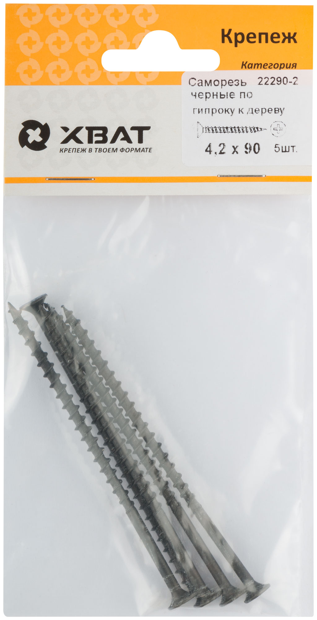 Купить Саморезы черные по гипроку к дереву 4,2 х 90 (фасовка 5 шт) по доступной цене в Москве