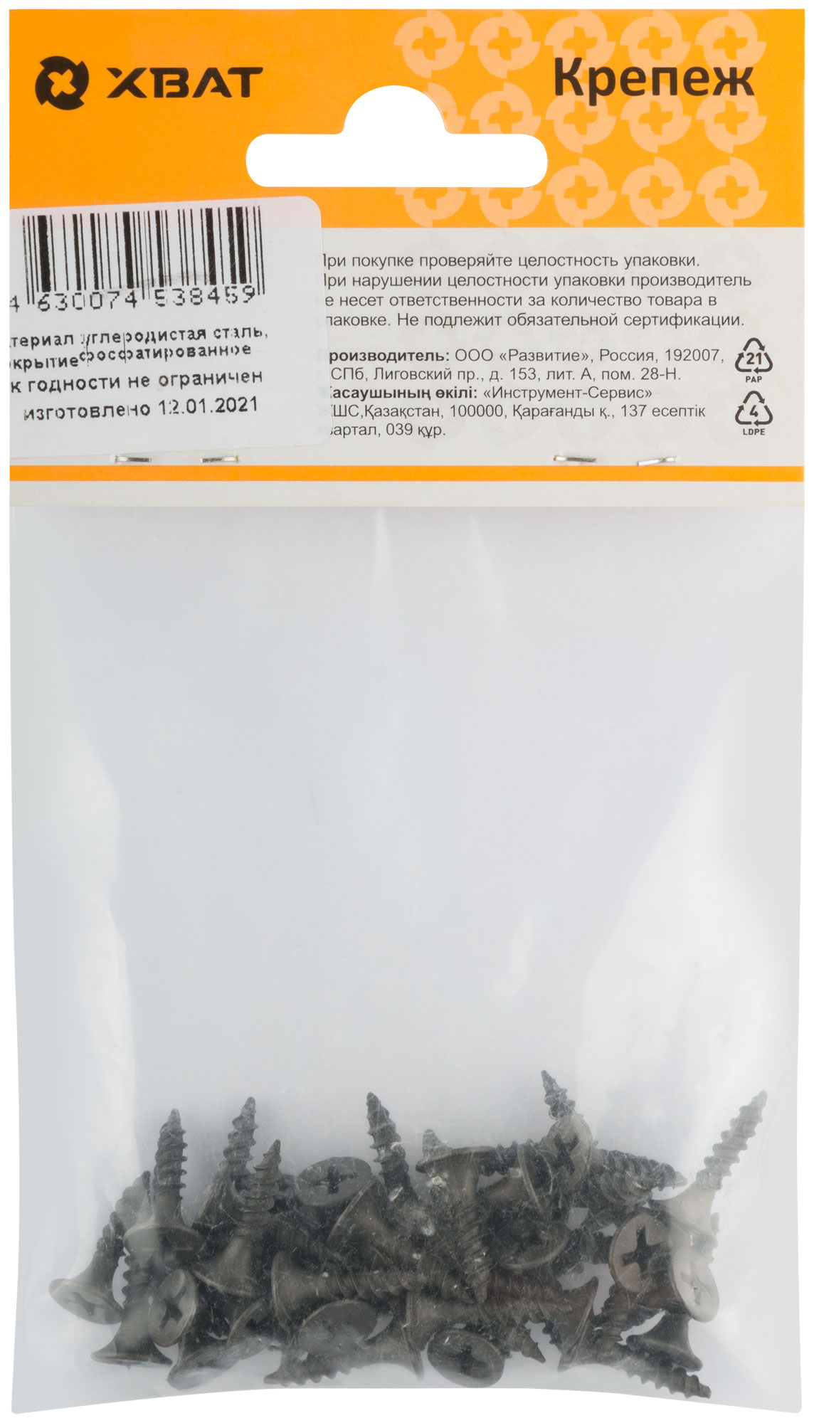 Купить Саморезы черные по гипроку к металлу 3,5 х 16 (фасовка 40 шт) по доступной цене в Москве