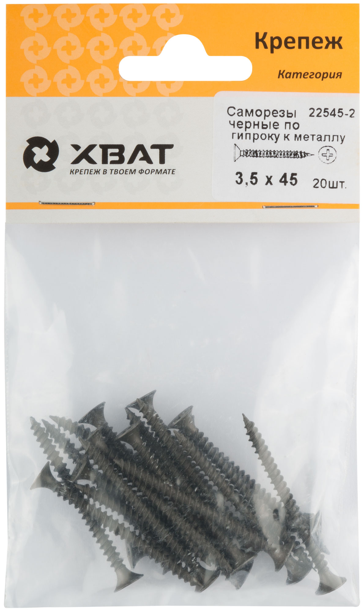 Купить Саморезы черные по гипроку к металлу 3,5 х 45 (фасовка 20 шт) по доступной цене в Москве