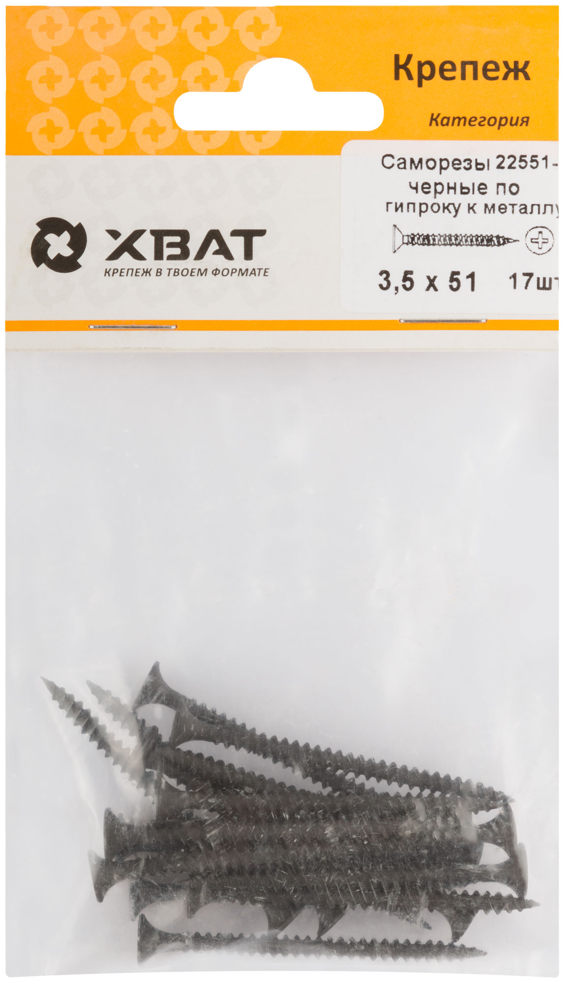 Купить Саморезы черные по гипроку к металлу 3,5 х 51 (фасовка 17 шт) по доступной цене в Москве