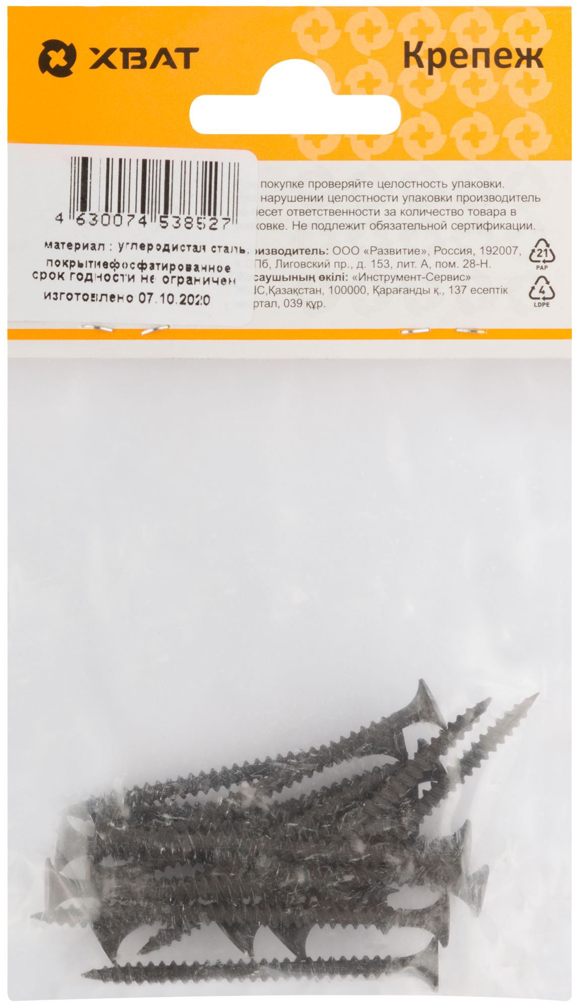 Фосфатированный. Предназначен для крепления материалов к основанию без предварительного сверления. Основная область применения – крепление листов гипсокартона к профилям из листового металла толщиной до 0,9 мм. Частый шаг резьбы.