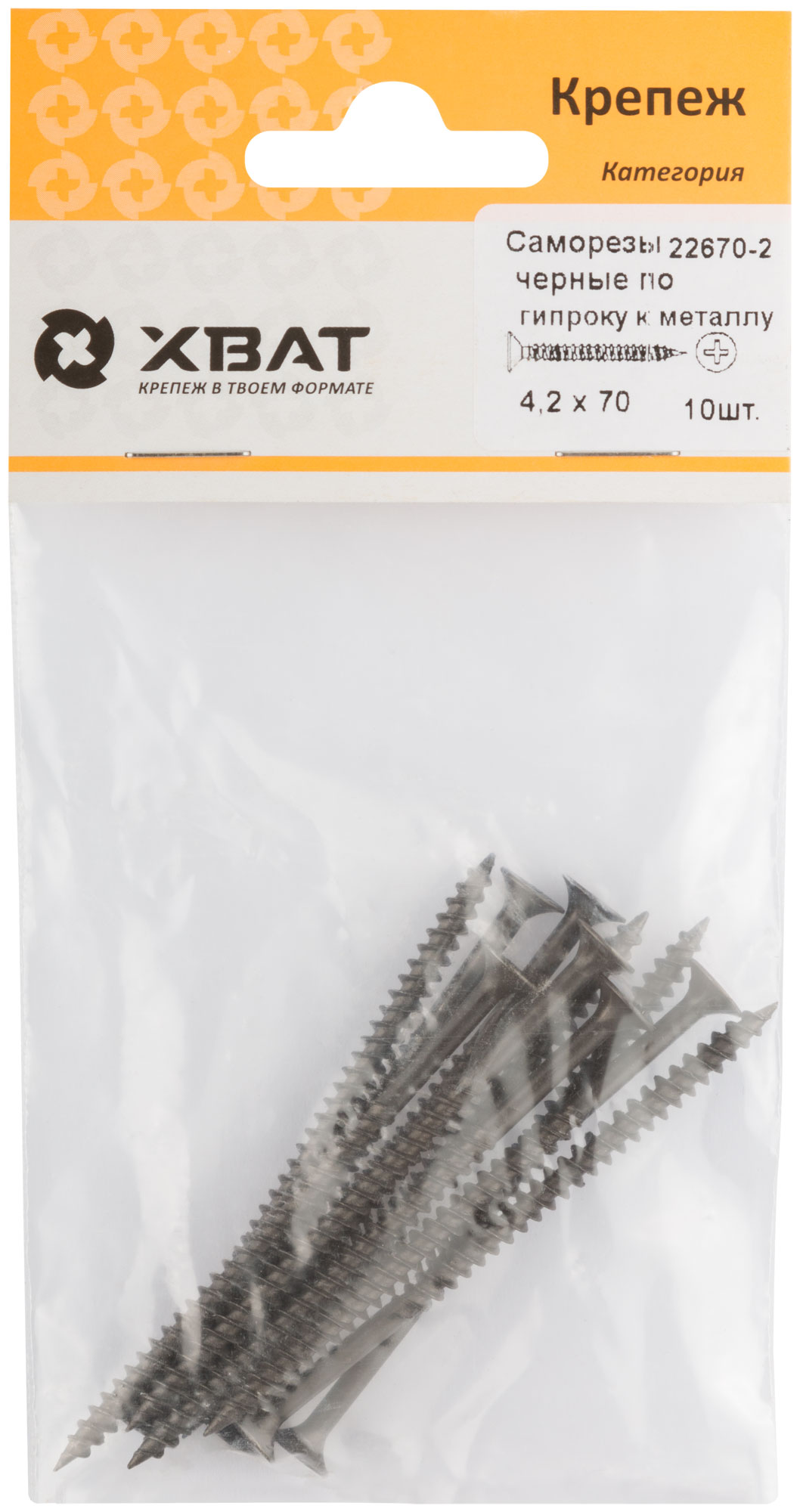 Купить Саморезы черные по гипроку к металлу 4,2 х 70 (фасовка 10 шт) по доступной цене в Москве