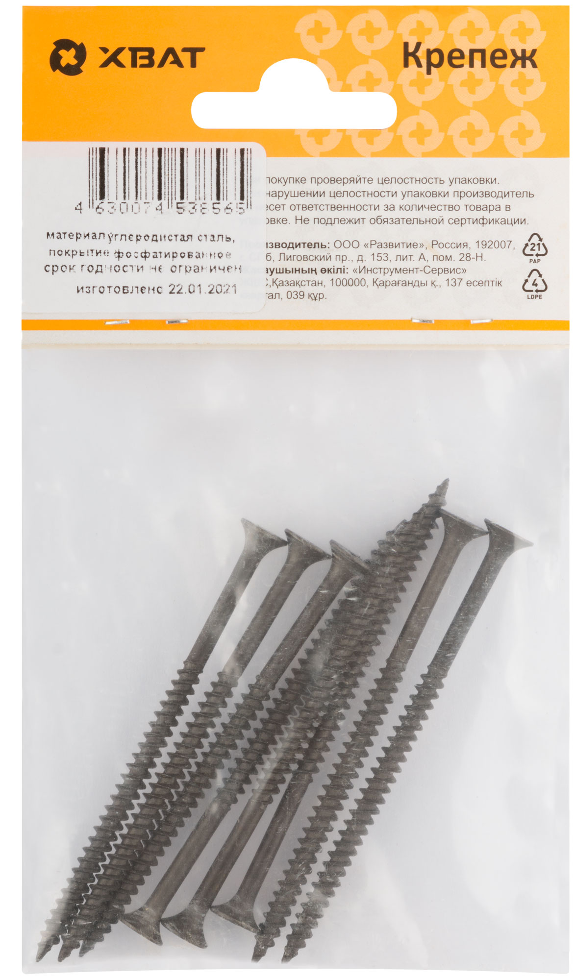 Купить Саморезы черные по гипроку к металлу 4,2 х 75 (фасовка 8 шт) по доступной цене в Москве