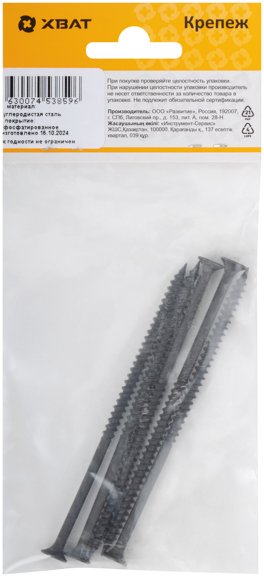 Купить Саморезы черные по гипроку к металлу 4,8 х 102 (фасовка 5 шт) по доступной цене в Москве