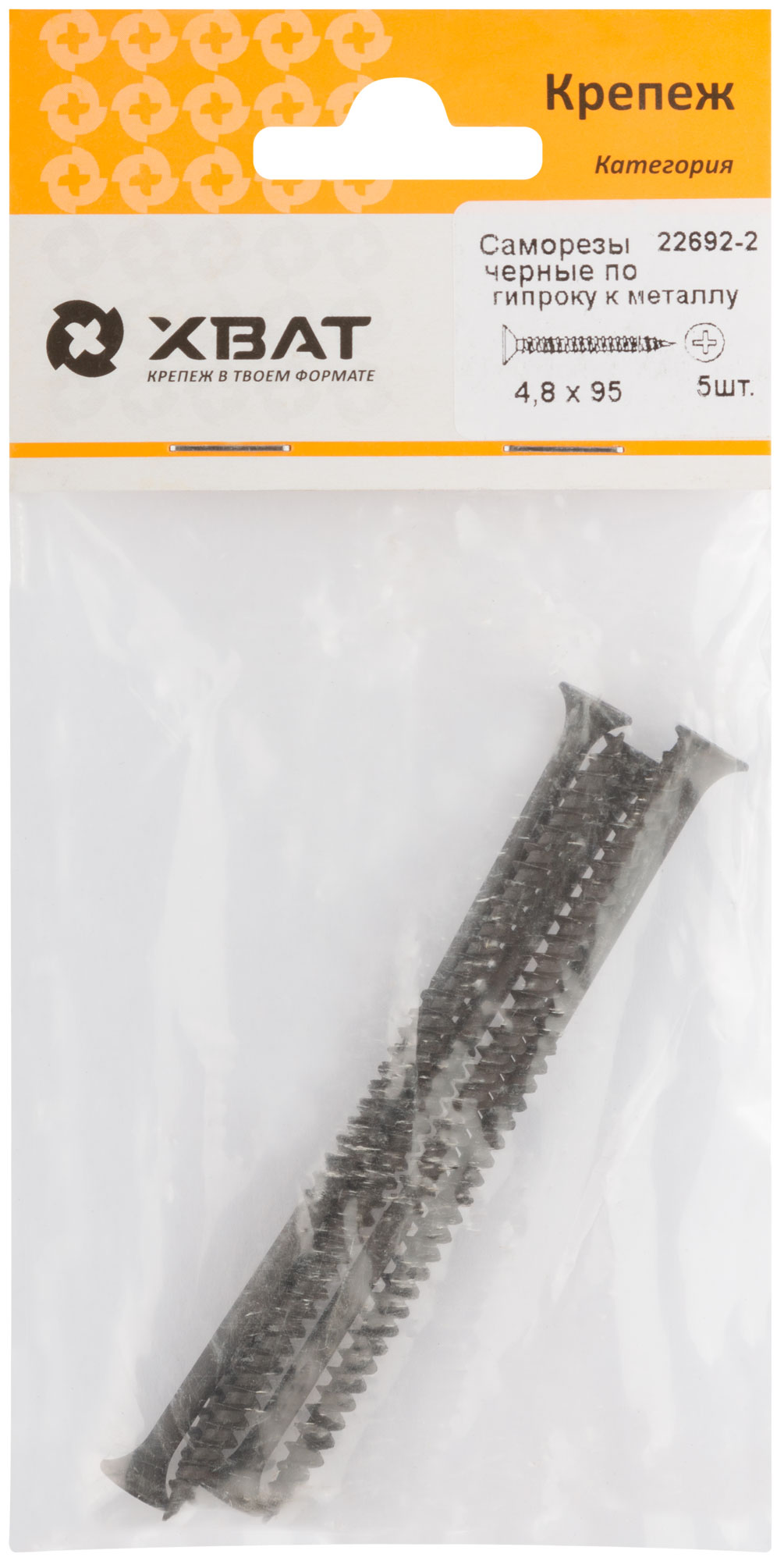 Купить Саморезы черные по гипроку к металлу 4,8 х 95 (фасовка 5 шт) по доступной цене в Москве