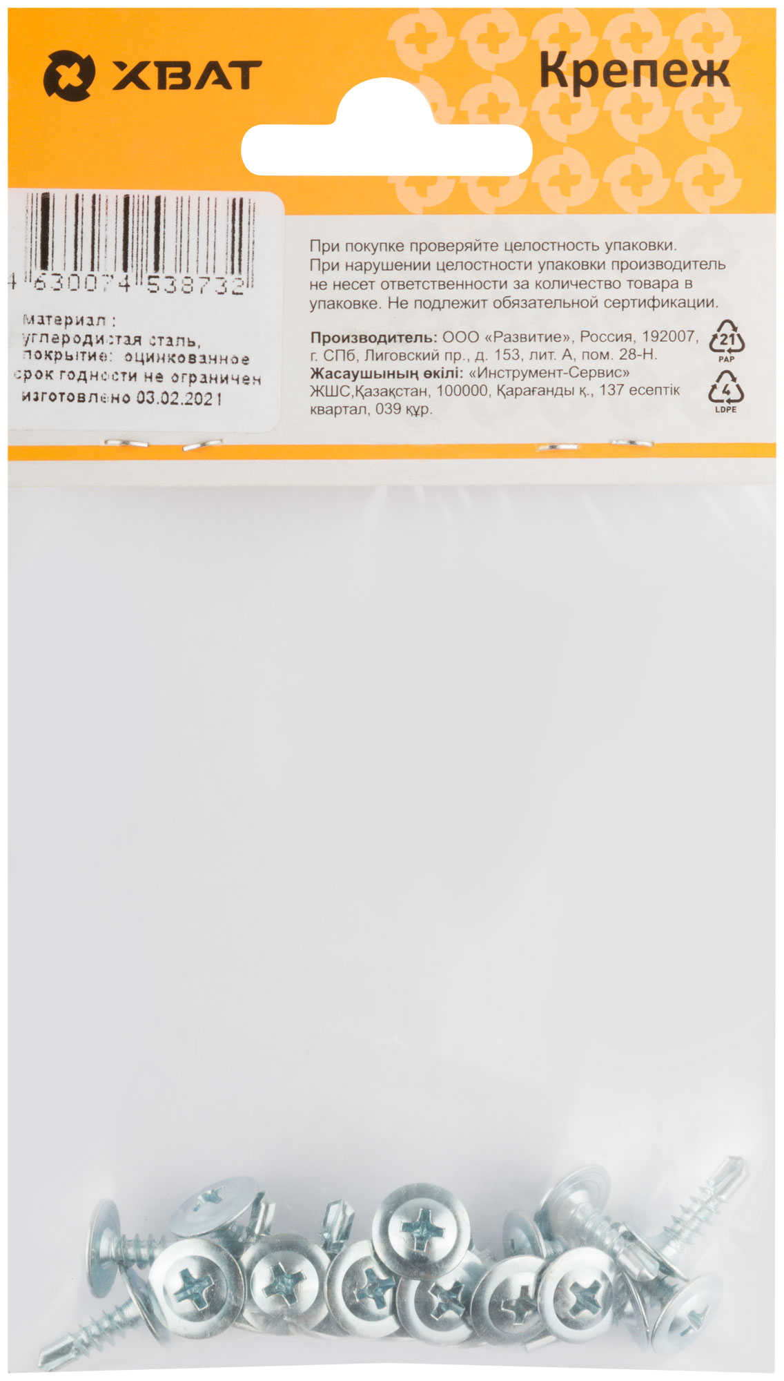 С пресс-шайбой, оцинкованный, полусферическая головка PH2. Частый шаг резьбы. Подходит для крепления как к деревянным конструкциям, так и к металлу. При толщине металла до 2 мм - не требует предварительного сверления.