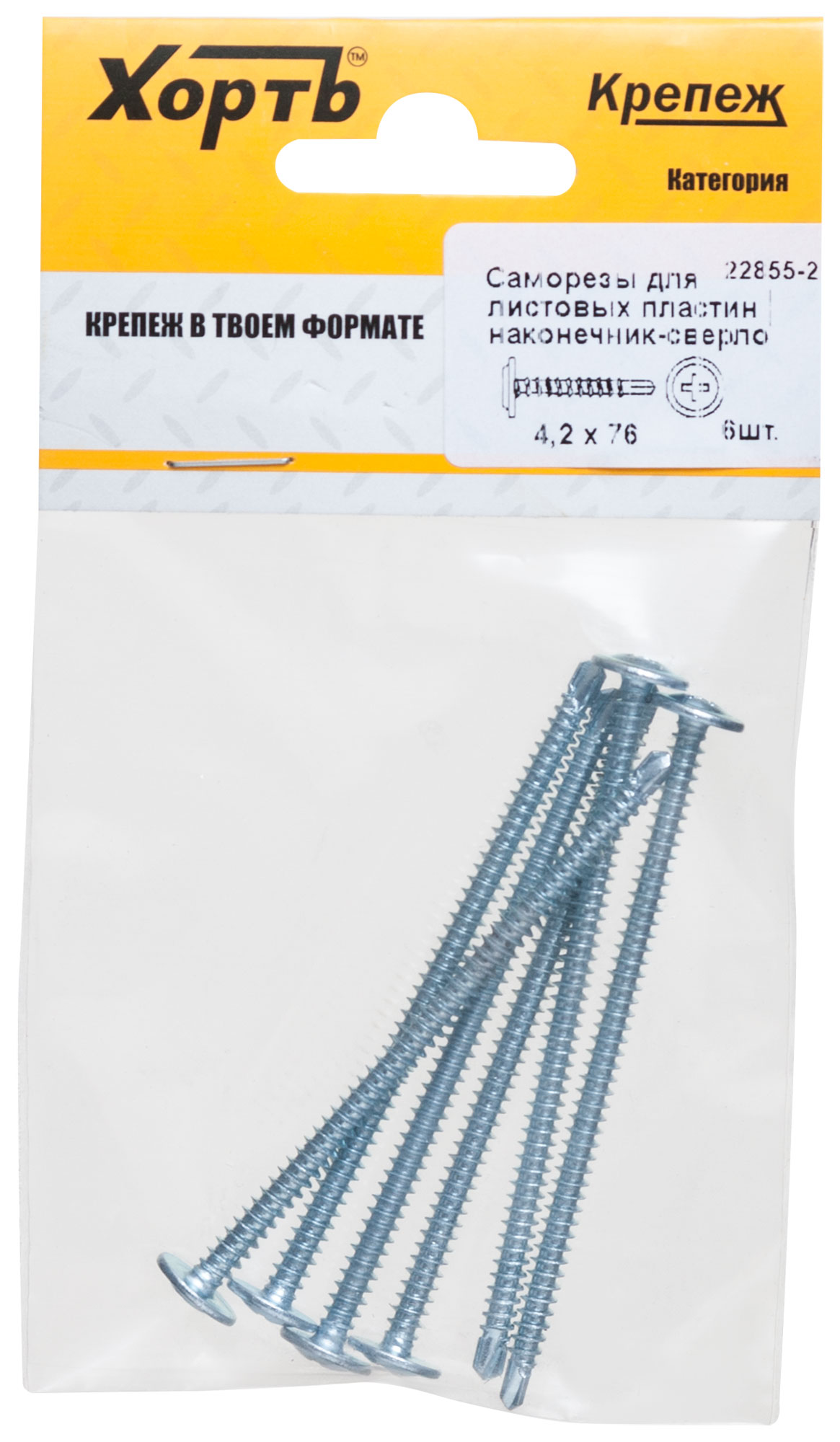 Купить Саморезы для листовых пластин, наконечник-сверло 4,2 х 76 (фасовка 6 шт) по доступной цене в Москве