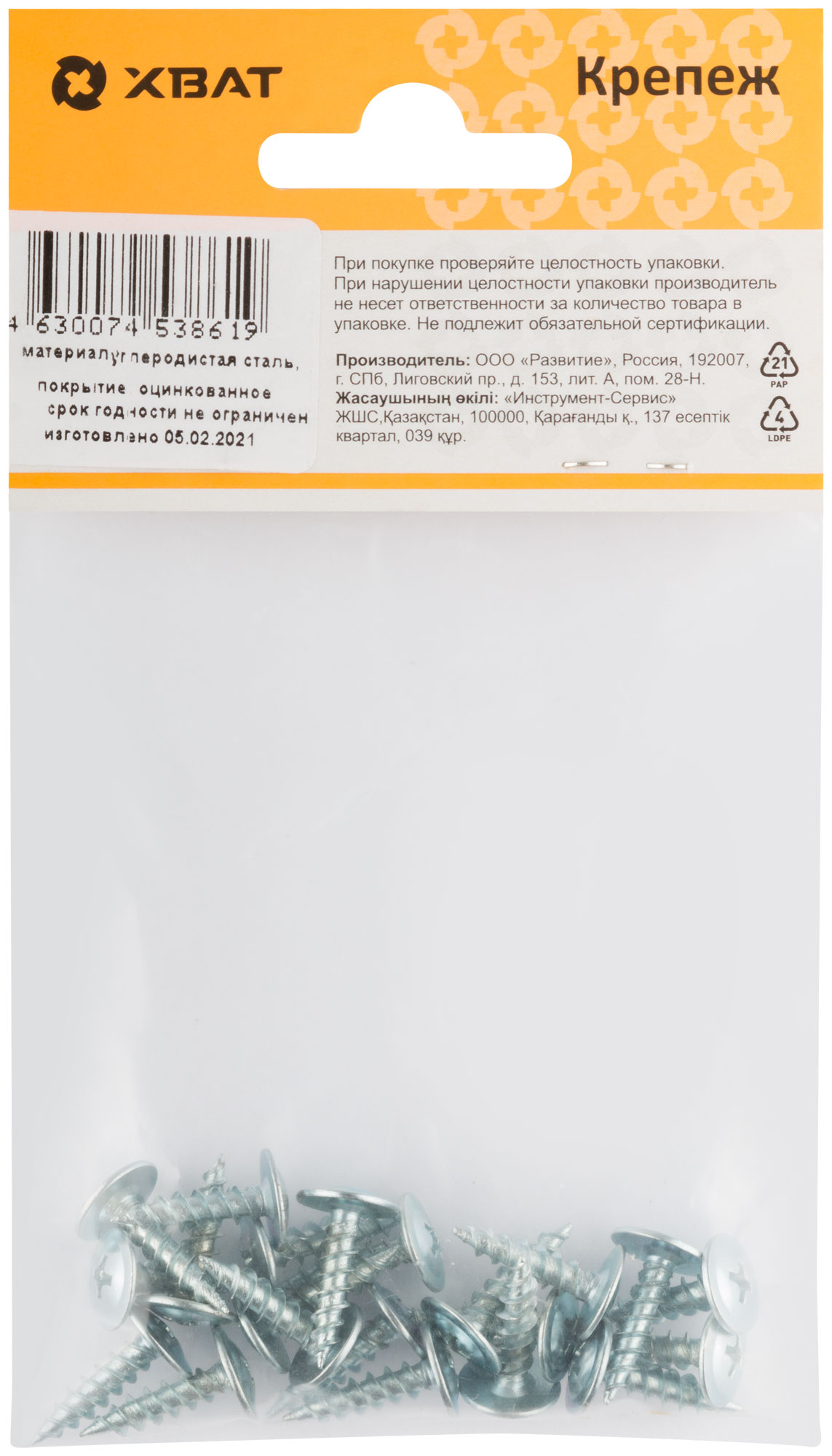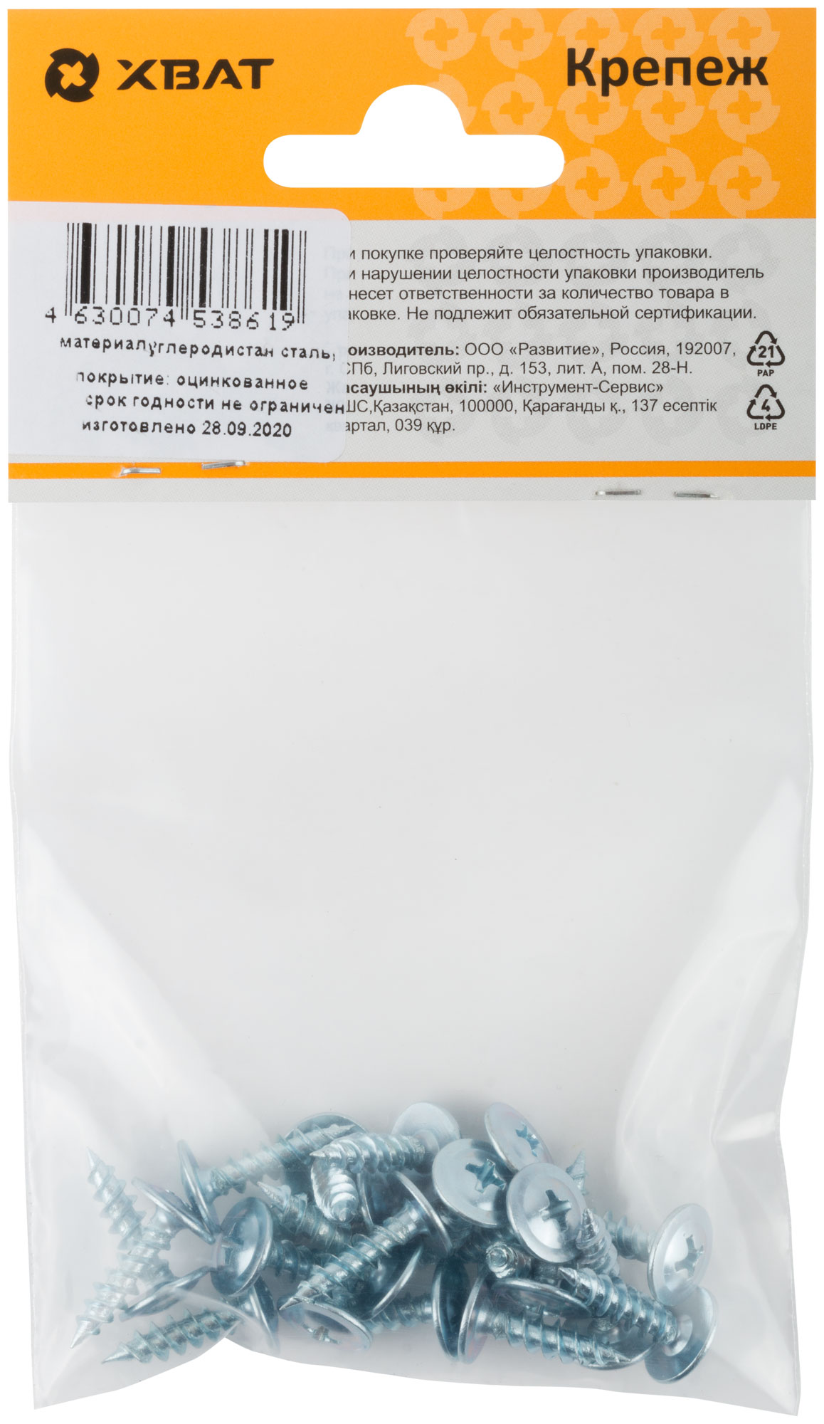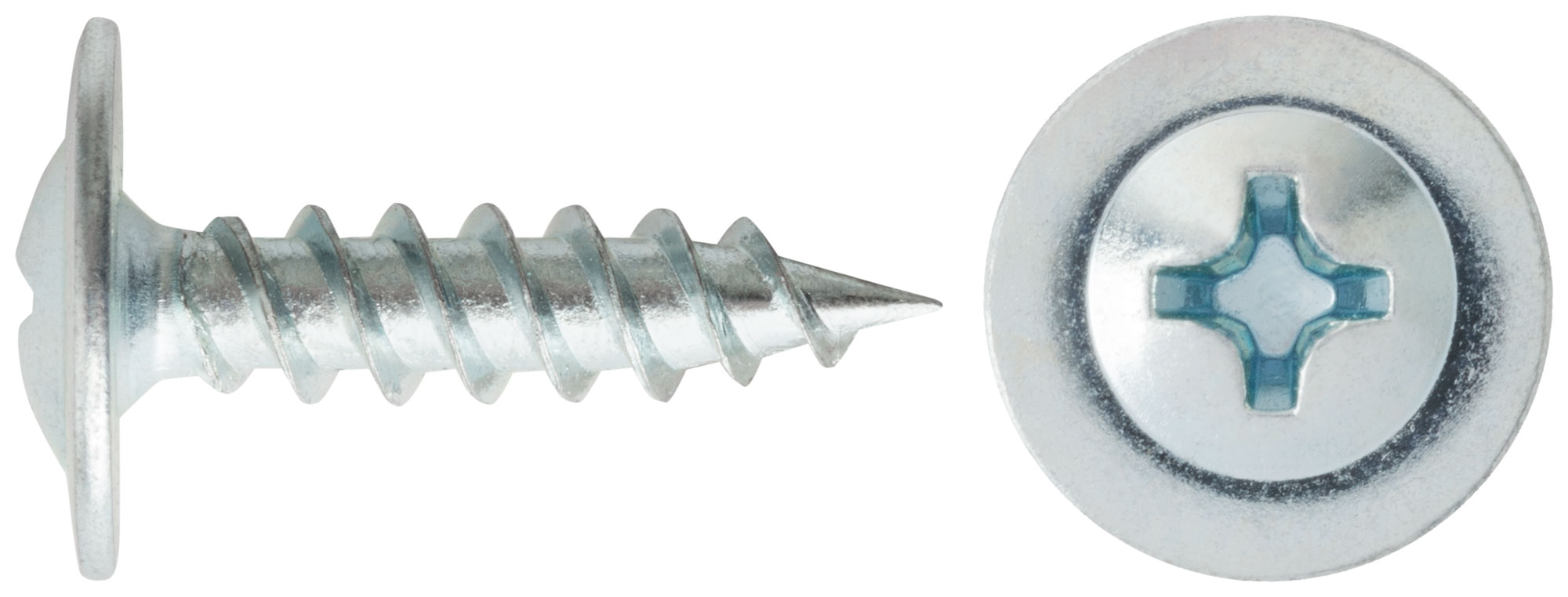 С пресс-шайбой, оцинкованный, полусферическая головка PH2. Частый шаг резьбы. Подходит для крепления как к деревянным конструкциям, так и к металлу. При толщине металла до 0,9 мм - не требует предварительного сверления.