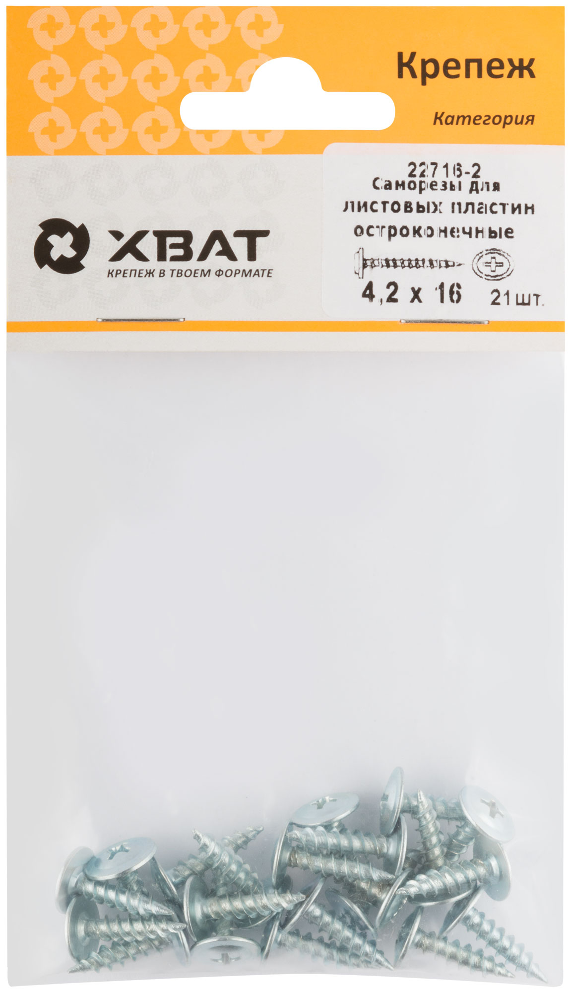 Купить Саморезы для листовых пластин, остроконечные 4,2 х 16 (фасовка 21 шт) по доступной цене в Москве