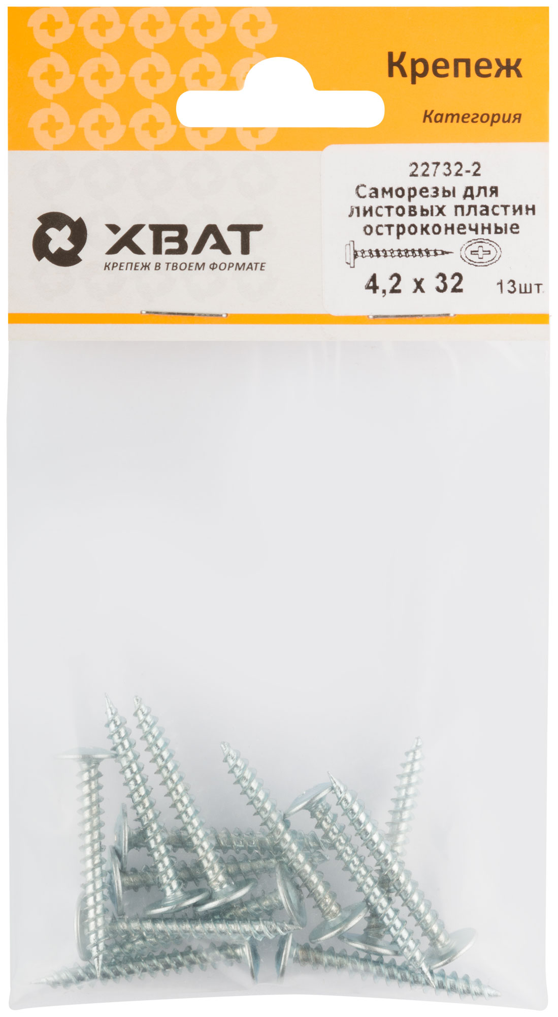 Купить Саморезы для листовых пластин, остроконечные 4,2 х 32 (фасовка 13 шт) по доступной цене в Москве