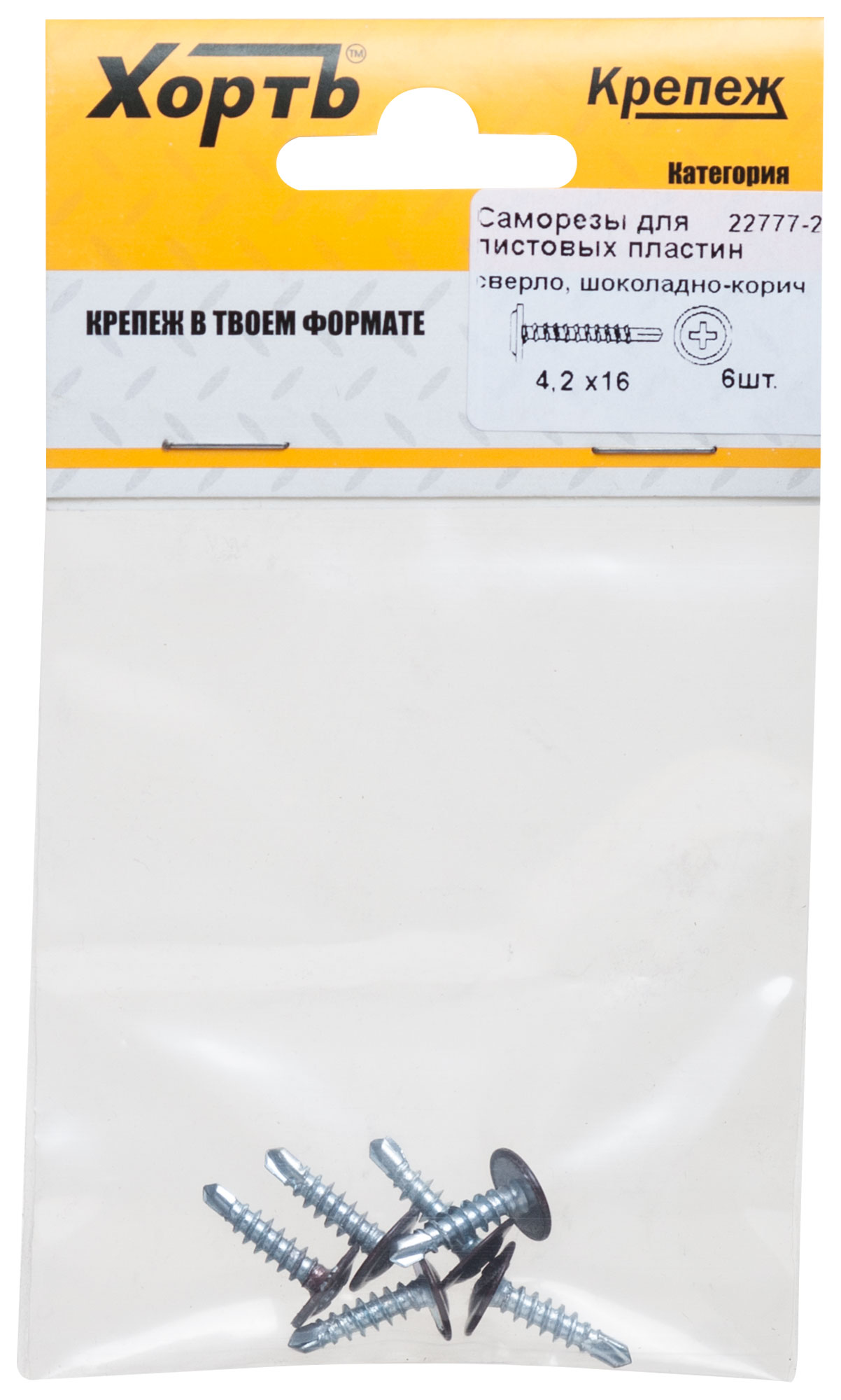 Купить Саморезы для листовых пластин, сверло 4,2 х 16 шоколадно-коричневый, RAL 8017 (фасовка 6 шт) по доступной цене в Москве