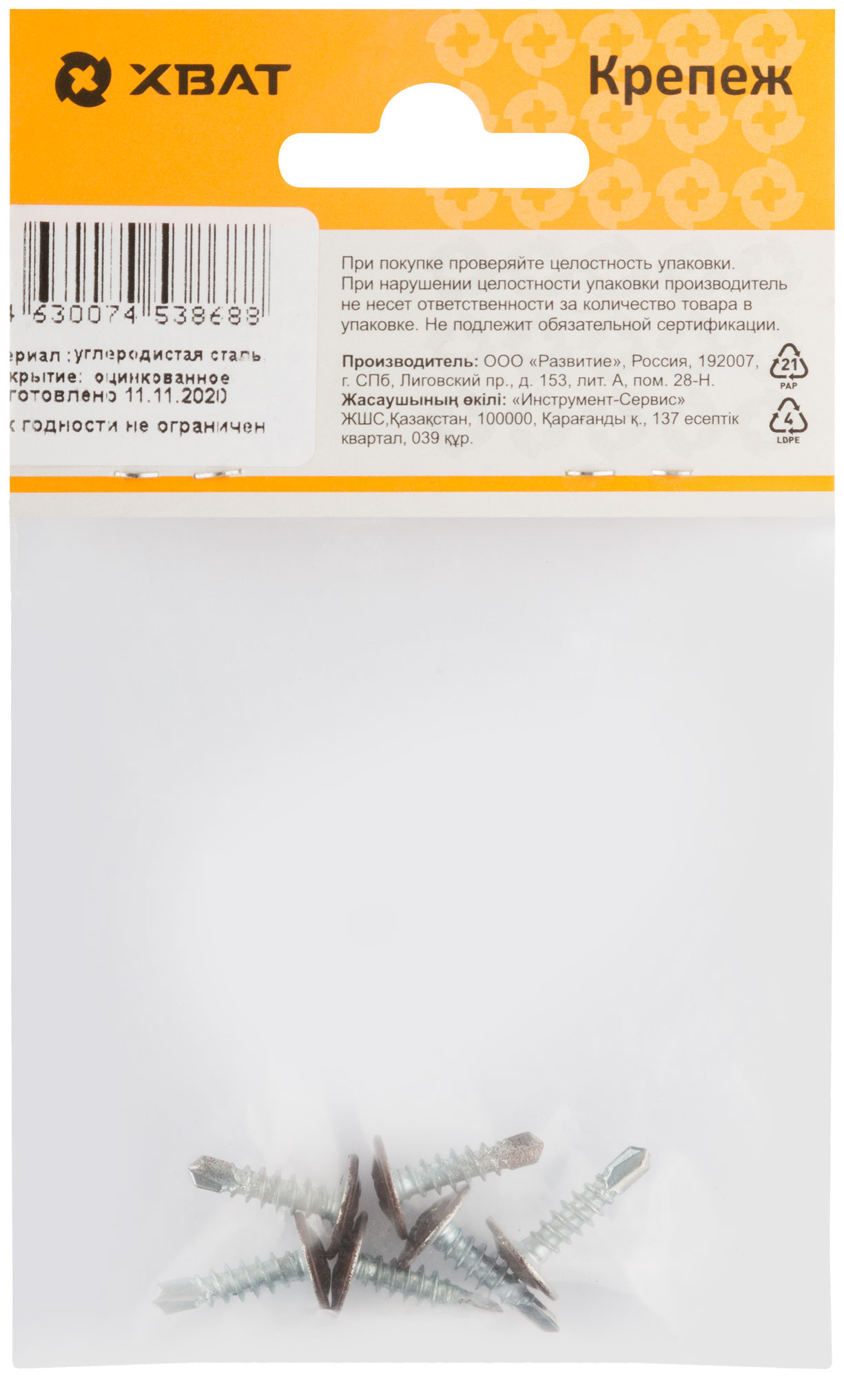 С пресс-шайбой. Оцинкованный крашеный. Полусферическая головка РН2. Предназначен для крепления к металлу. Имеет резьбу с частым шагом и сверловой наконечник со способностью просверливания до 2 мм. (6 10.)