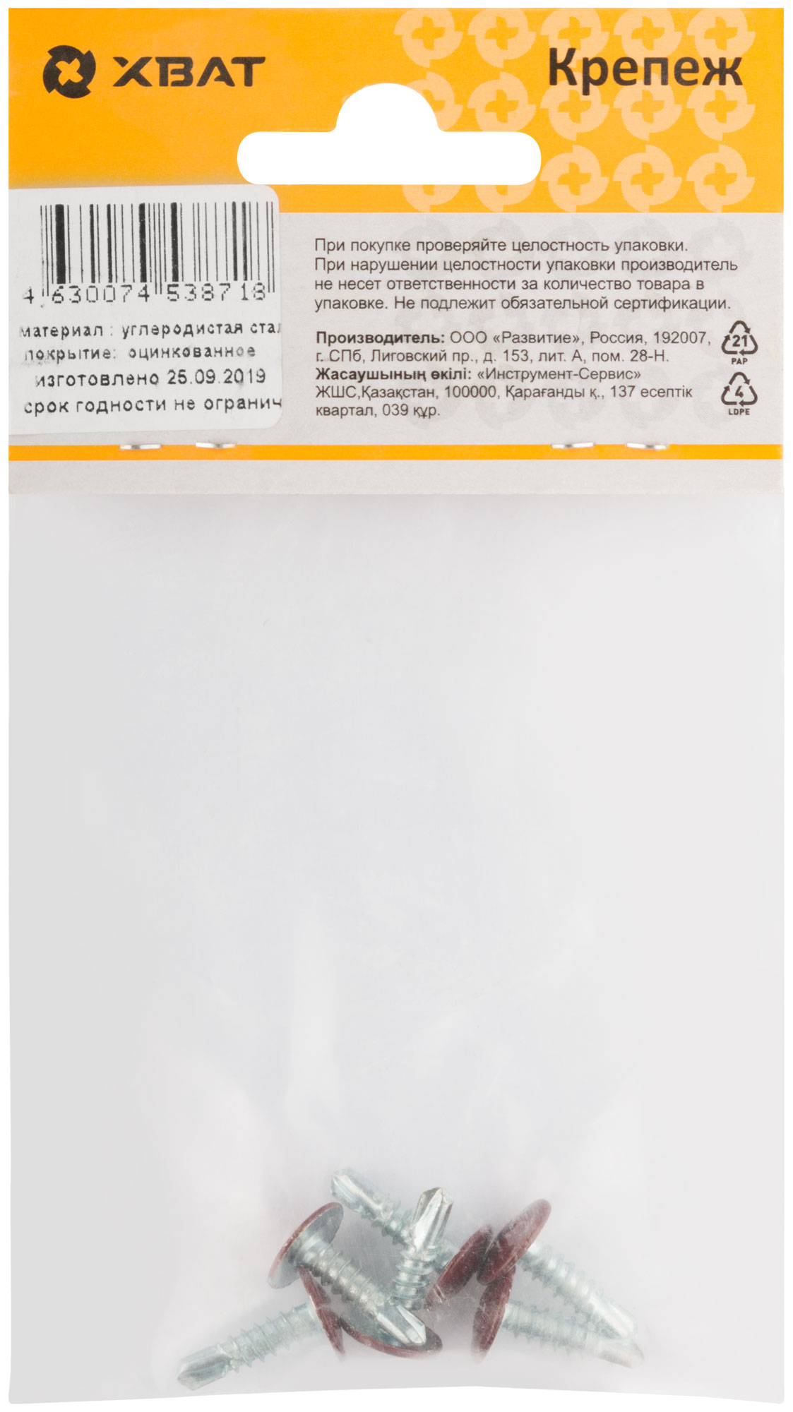 С пресс-шайбой. Оцинкованный крашеный. Полусферическая головка РН2. Предназначен для крепления к металлу. Имеет резьбу с частым шагом и сверловой наконечник со способностью просверливания до 2 мм. (6 10.)