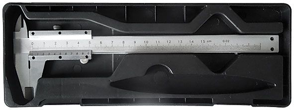 Для наружных и внутренних измерений. Точность 0,02 мм. В пластиковом футляре. Материал: нержавеющая сталь .