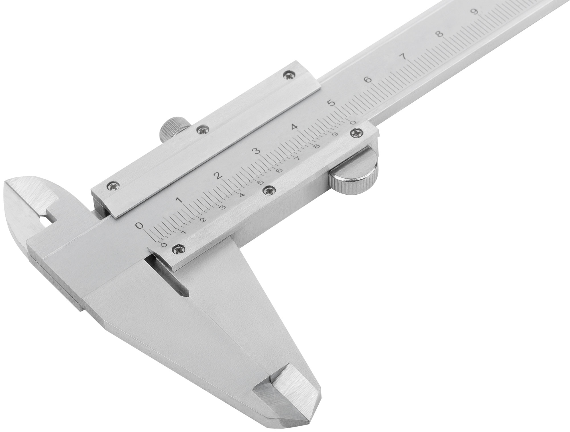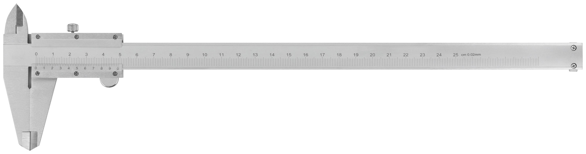 Для наружных и внутренних измерений. Точность 0,02 мм. В пластиковом футляре. Материал: нержавеющая сталь .