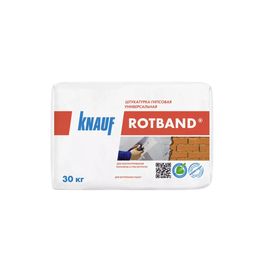 Штукатурка гипсовая Knauf Ротбанд с полимерными добавками, обеспечивающими повышенную адгезию и легкость выполнения работы. Предназначена для выравнивания стен и потолков из бетона, кирпича, цементной штукатурки, поверхностей из пенополистирола, ЦСП. Рекомендуется для гладких бетонных потолочных и стеновых поверхностей. Штукатурка подходит для отделки помещений с нормальной влажностью, а также в кухнях и ванных комнатах с покрытием, обеспечивающим защиту от увлажнения. Предназначена для внутренних работ.
