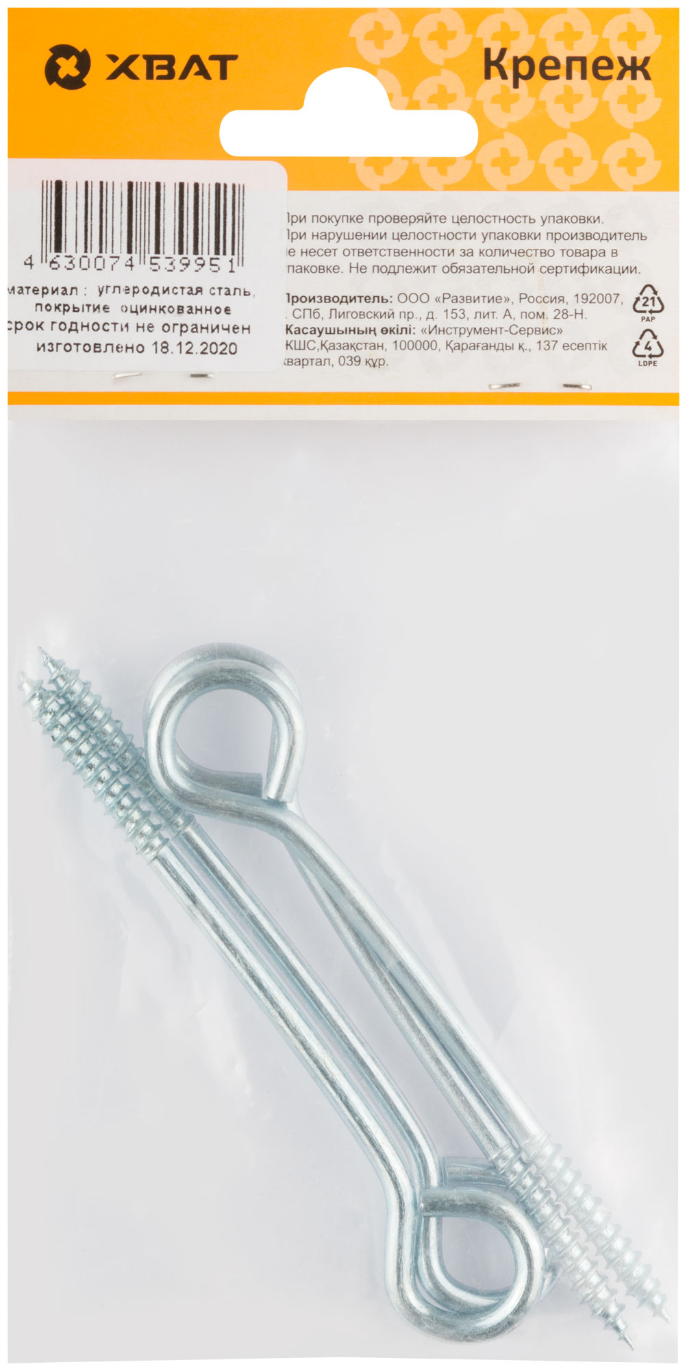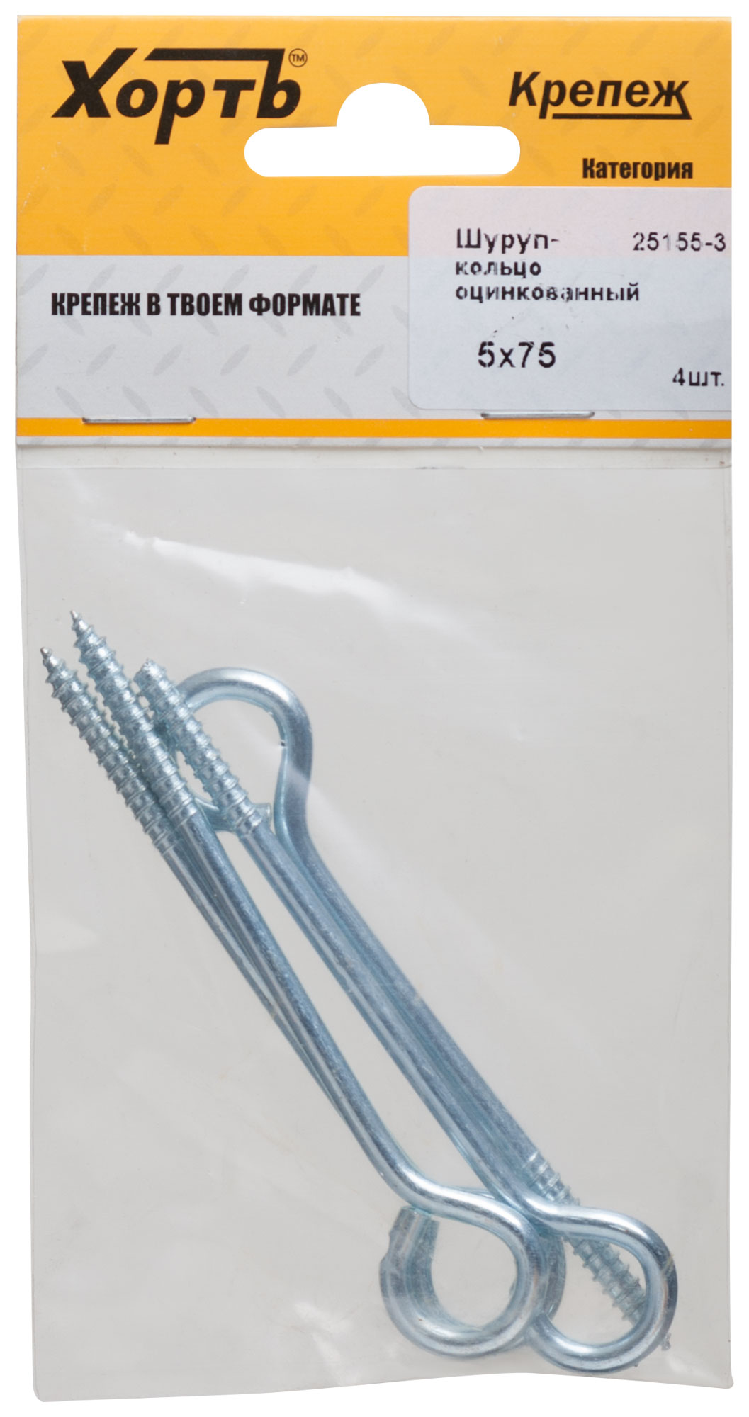Купить Шуруп-кольцо оцинкованный 5 х 75/80 (фасовка 4 10) по доступной цене в Москве