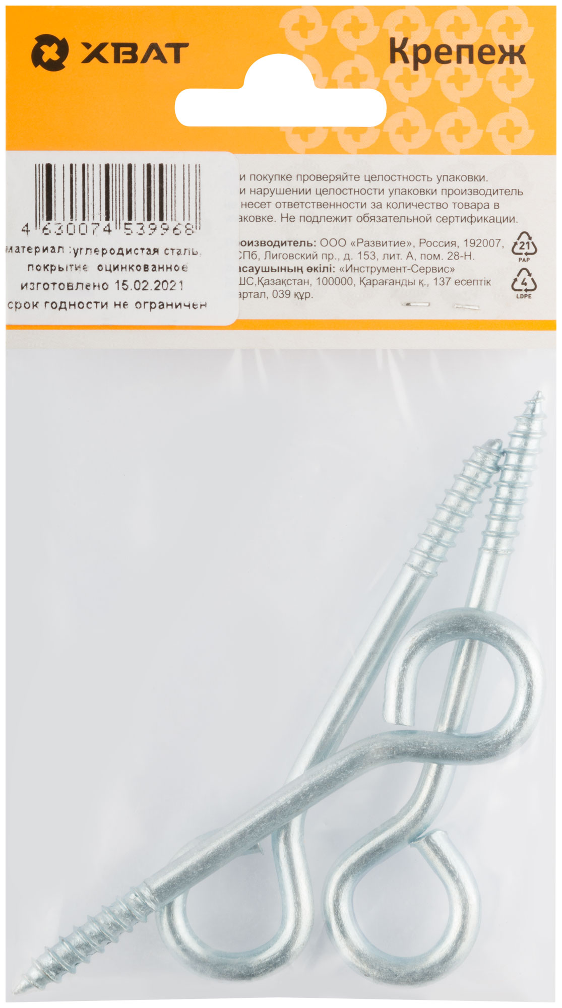 Купить Шуруп-кольцо оцинкованный 6 х 60/65 (фасовка 3 10) по доступной цене в Москве