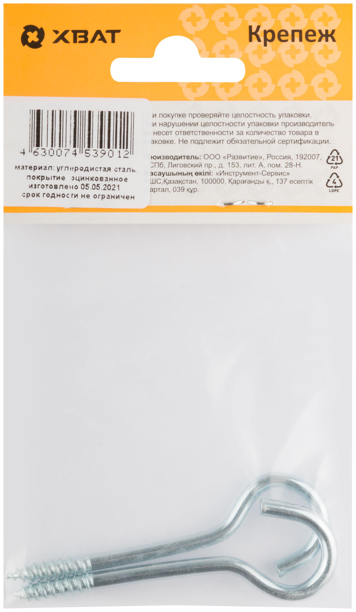 Купить Шуруп-полукольцо оцинкованный, 5 х 75/80 (фасовка 2 10) по доступной цене в Москве