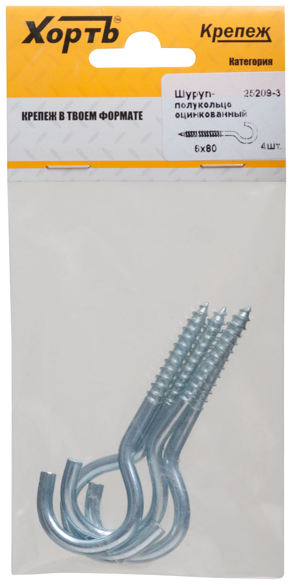 Купить Шуруп-полукольцо оцинкованный 6 х 80 (фасовка 4 10) по доступной цене в Москве