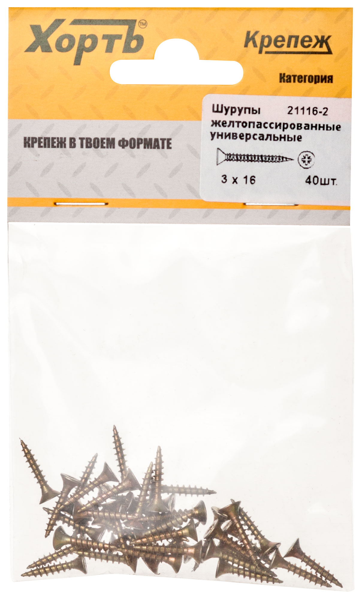 Купить Шурупы желтопассированные, универсальные 3 х 16 ( фасовка 40 шт.) по доступной цене в Москве