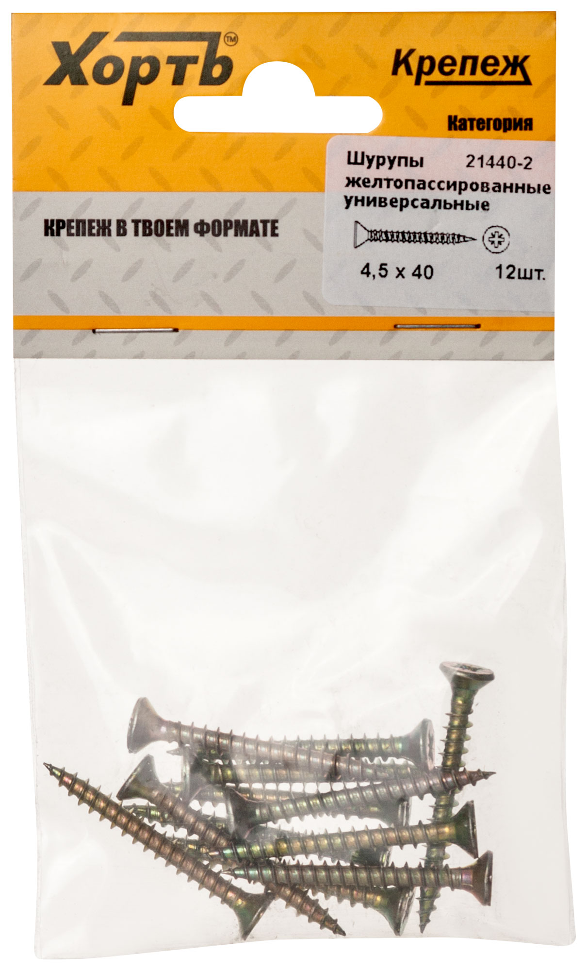 Купить Шурупы желтопассированные, универсальные 4.5 х 40 ( фасовка 12 шт.) по доступной цене в Москве