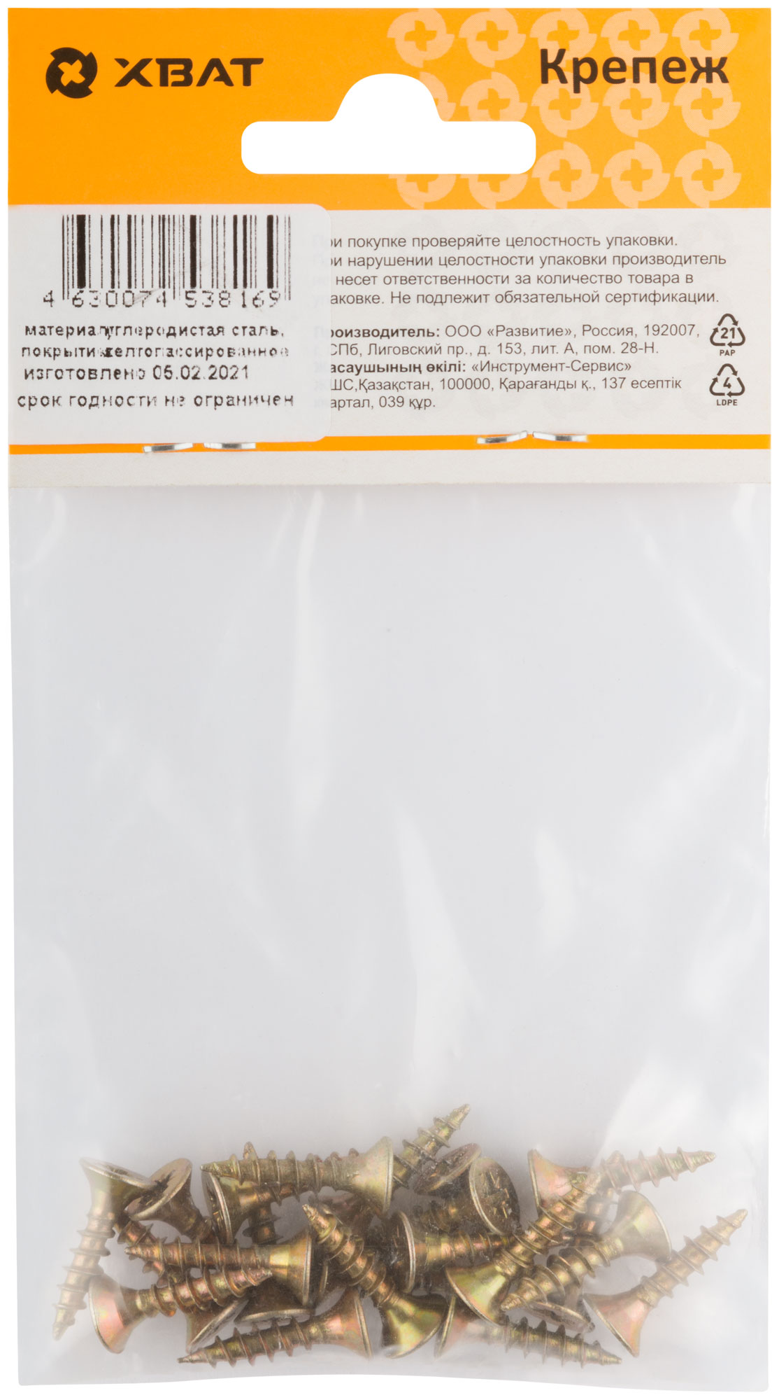 Купить Шурупы желтопассированные, универсальные 4,5 х 20 (фасовка 21шт ) по доступной цене в Москве