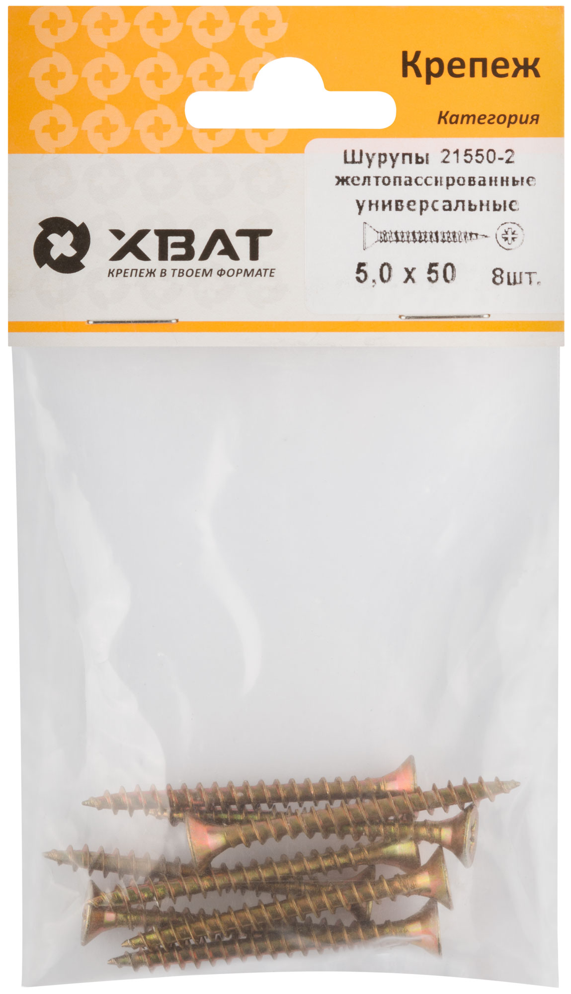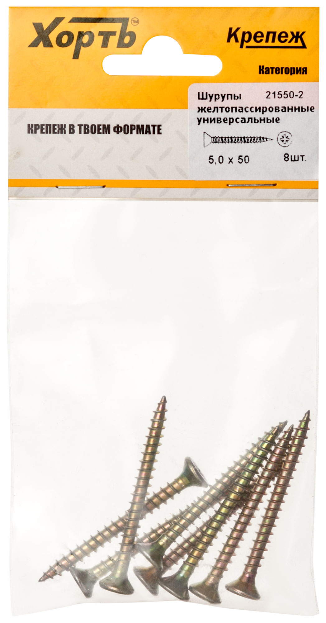 Купить Шурупы желтопассированные, универсальные 5 х 50 ( фасовка 8 шт.) по доступной цене в Москве