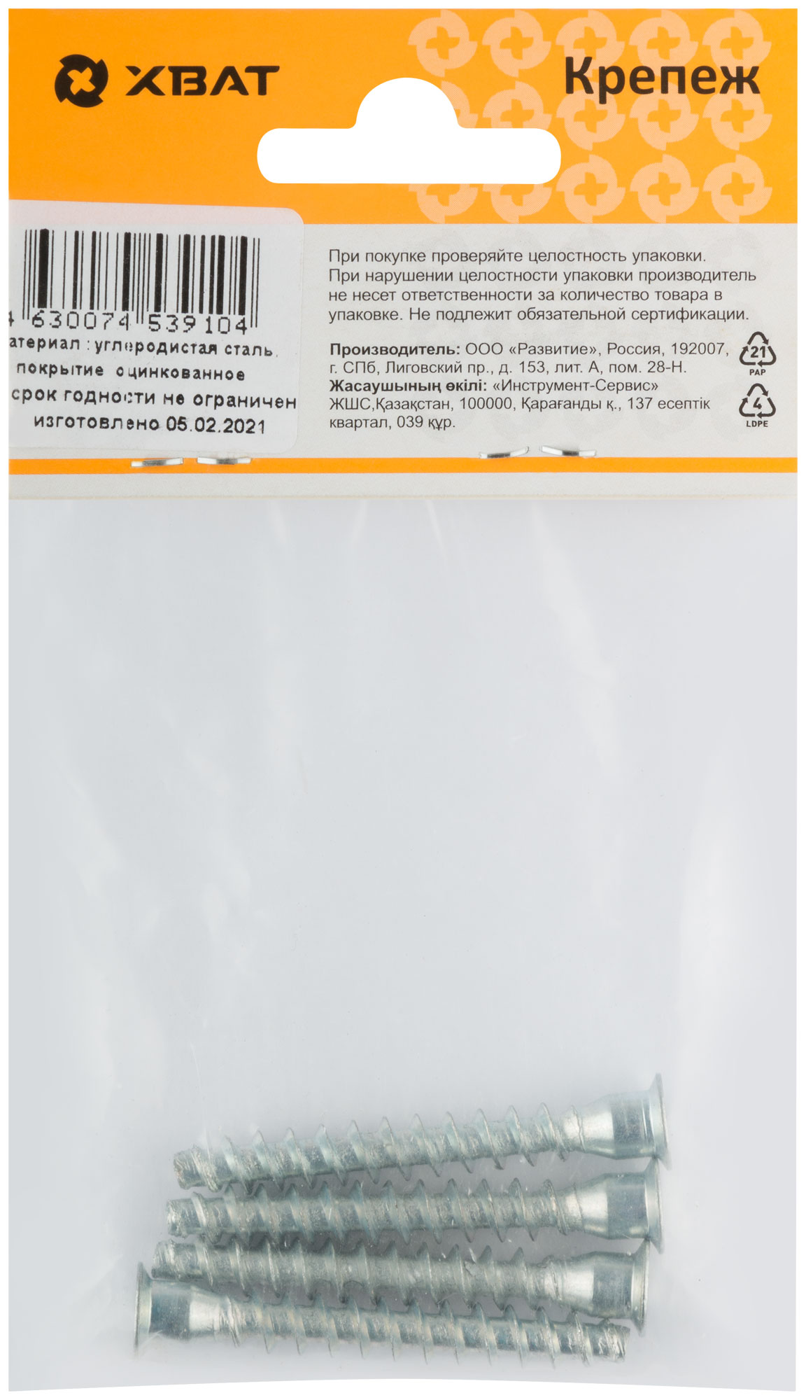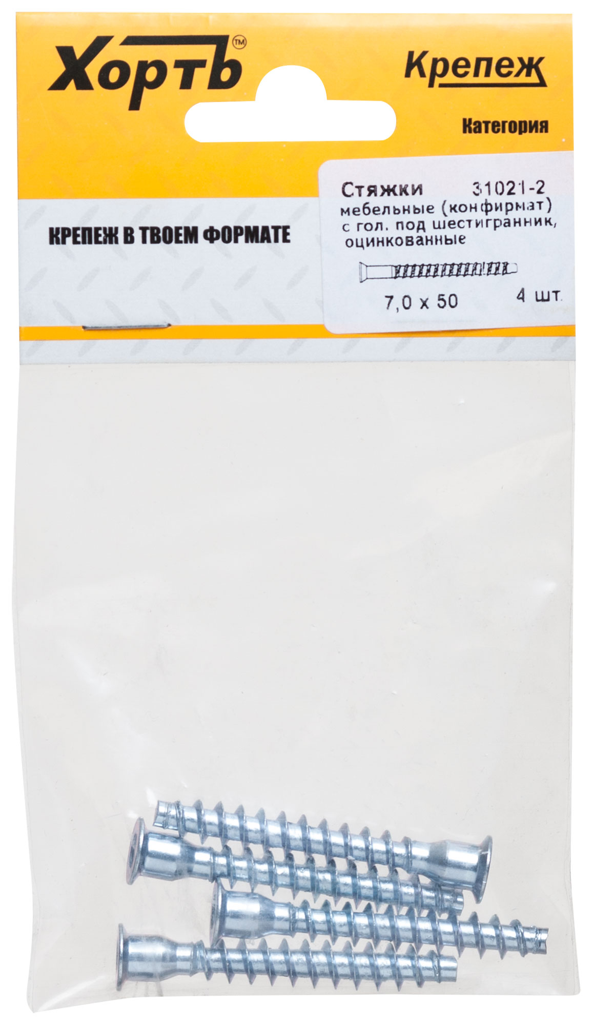 Купить Стяжки мебельные (конфирмат) с головкой под шестигранник, оцинкованные 7 х 50 (фасовка 4 10.) по доступной цене в Москве