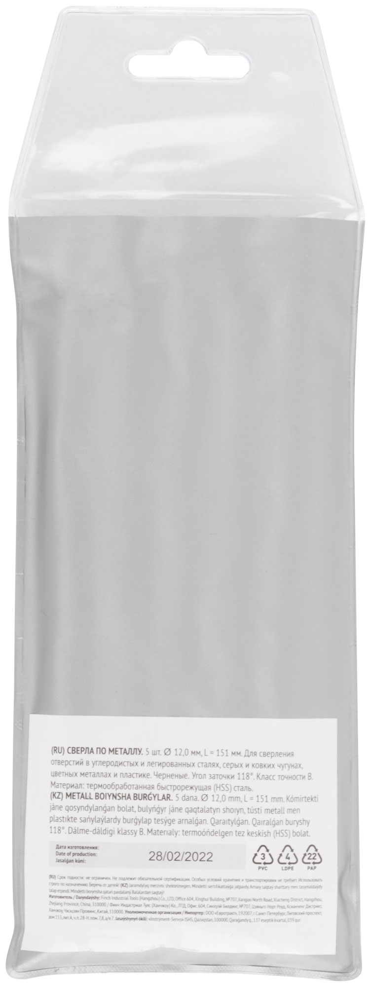 Купить Сверла по металлу HSS черненые 12,0x151 мм (5 10.) по доступной цене в Москве