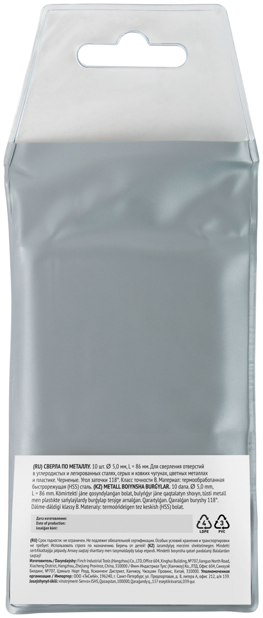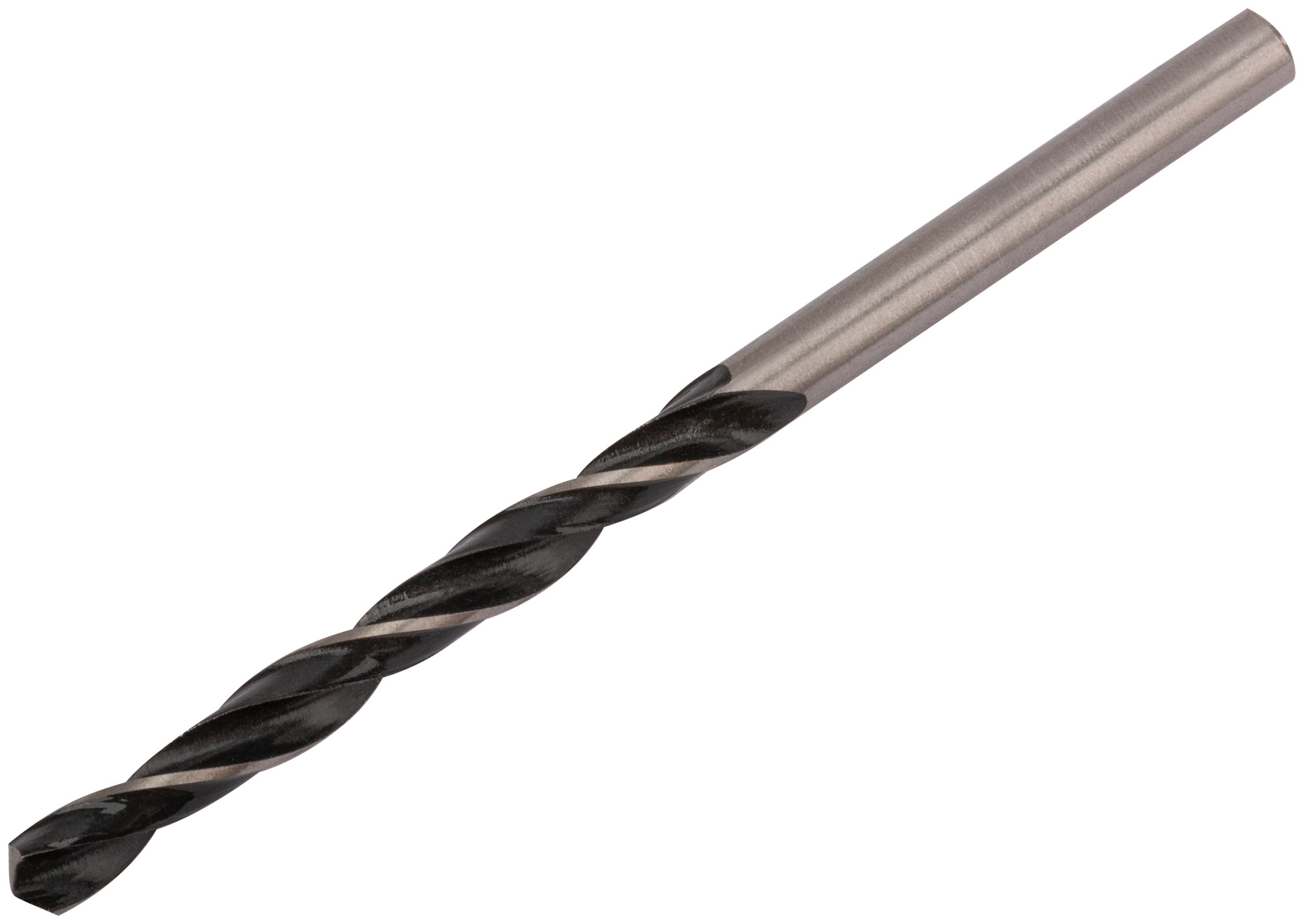 Цилиндрический хвостовик. Угол заточки 118°. Материал: быстрорежущая (HSS) сталь, винтовой прокат, черненое покрытие. 9овка п/э конверт.