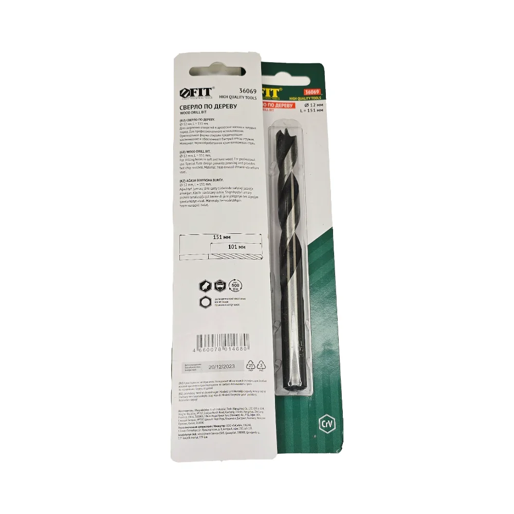 Купить Сверло по дереву, CrV Профи 12 мм FIT по доступной цене в Москве