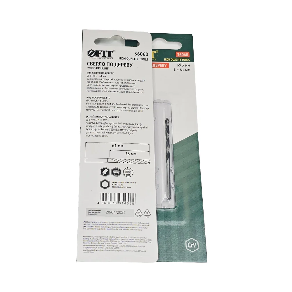 Купить Сверло по дереву, CrV Профи 3 мм FIT по доступной цене в Москве