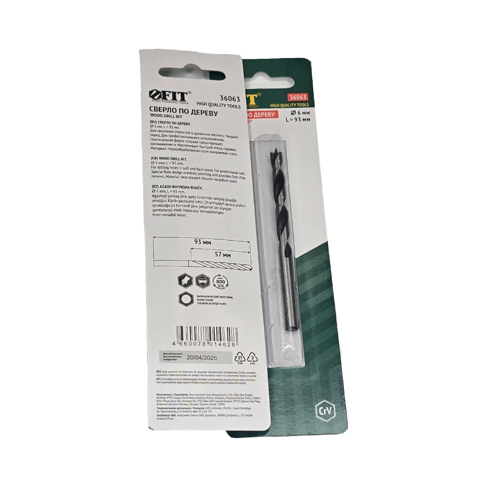 Купить Сверло по дереву, CrV Профи 6 мм FIT по доступной цене в Москве