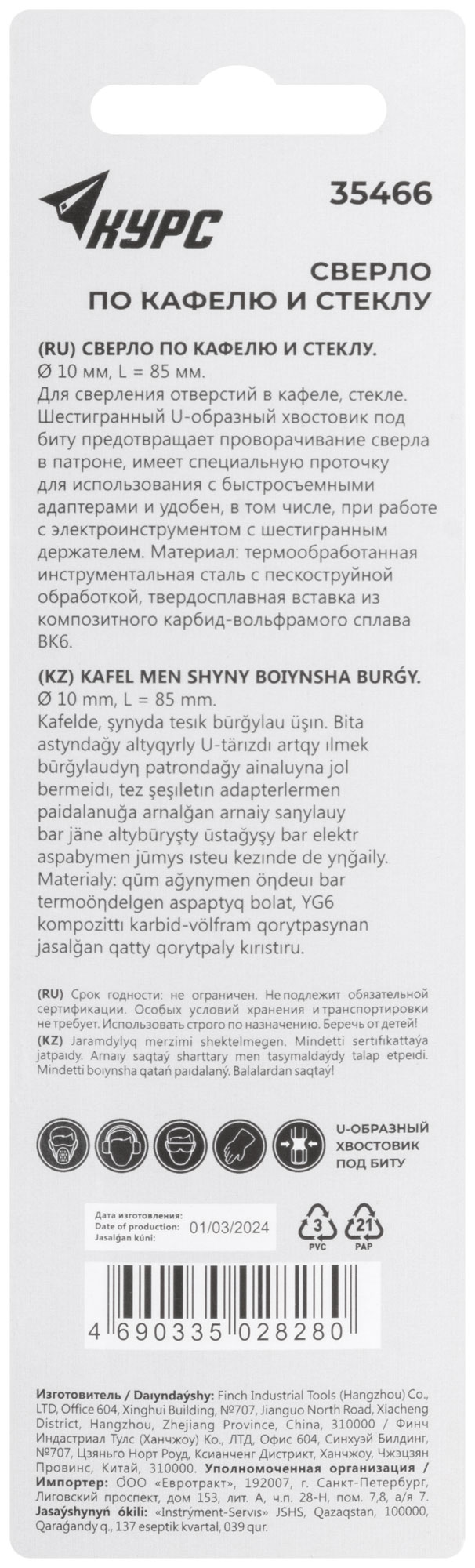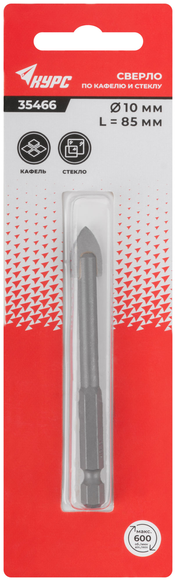 Купить Сверло по кафелю и стеклу, шестигранный U-хвостовик под биту 10х85 мм по доступной цене в Москве