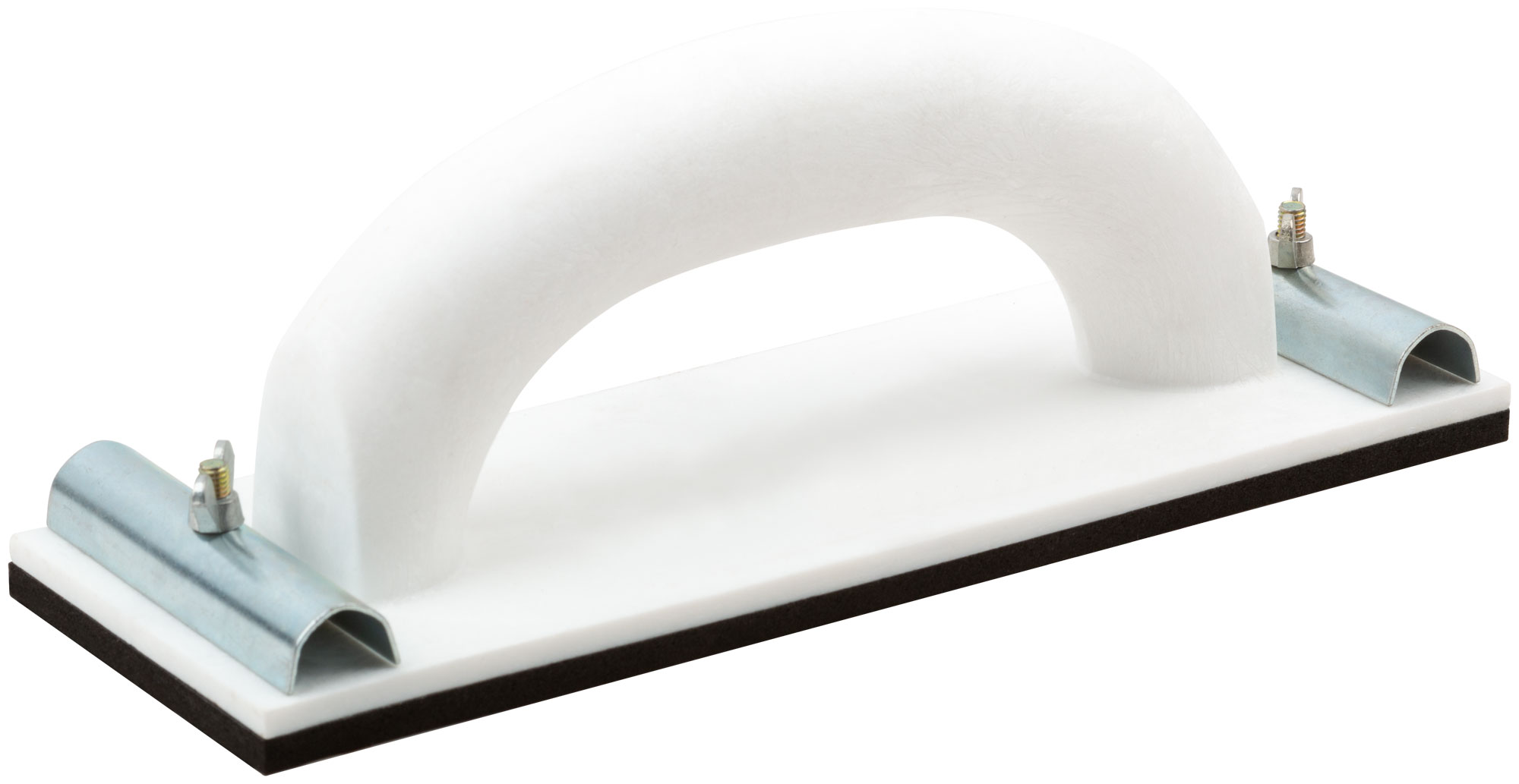 Для наждачной бумаги. Используется при обработке плоских поверхностей. Материал: пластик, с металлическим прижимом.