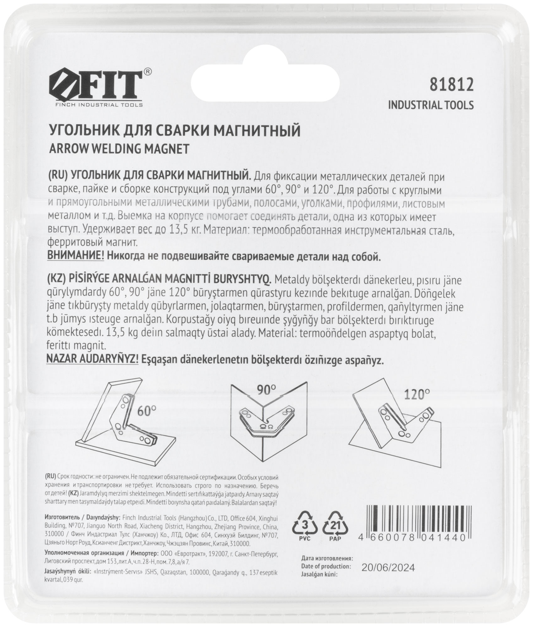Для фиксации металлических деталей при сварке, пайке и сборке конструкций под углами 60°, 90° и 120°. Для работы с круглыми и прямоугольными металлическими трубами, полосами, уголками, профилями, листовым металлом и т.д. Выемка на корпусе помогает соединять детали, одна из которых имеет выступ. Материал: термообработанная инструментальная сталь, ферритовый магнит. 9овка: блистер.