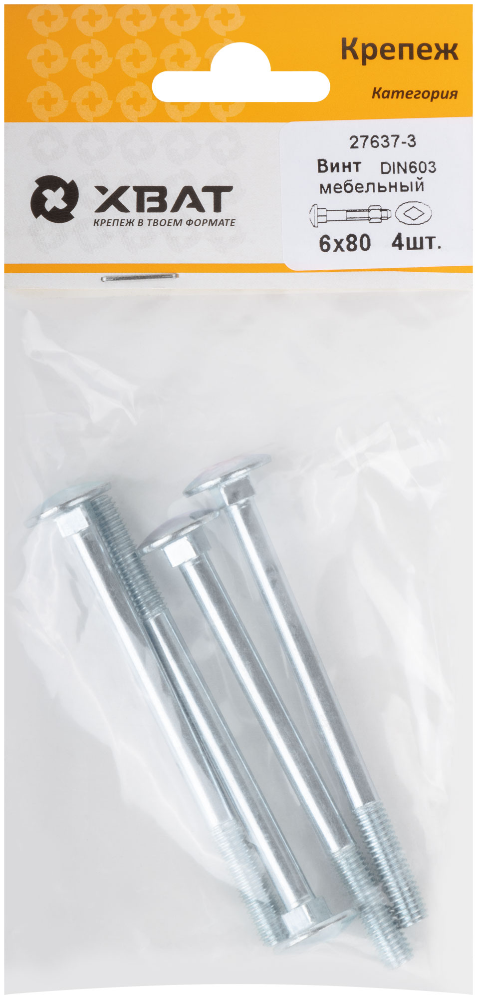 Купить Винт мебельный (DIN 603) 6х80 (фасовка 4 10) по доступной цене в Москве
