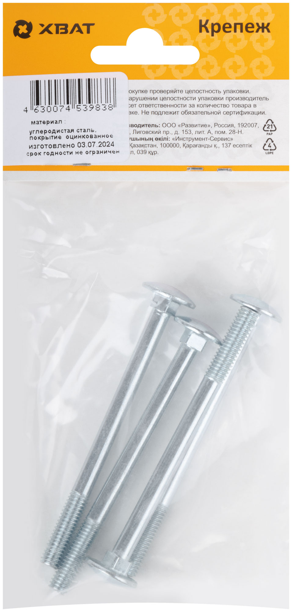 Полукруглая головка, неполная метрическая резьба. Изготовлен из конструкционной стали, покрытие - белый цинк. Применяется в мебельном производстве.