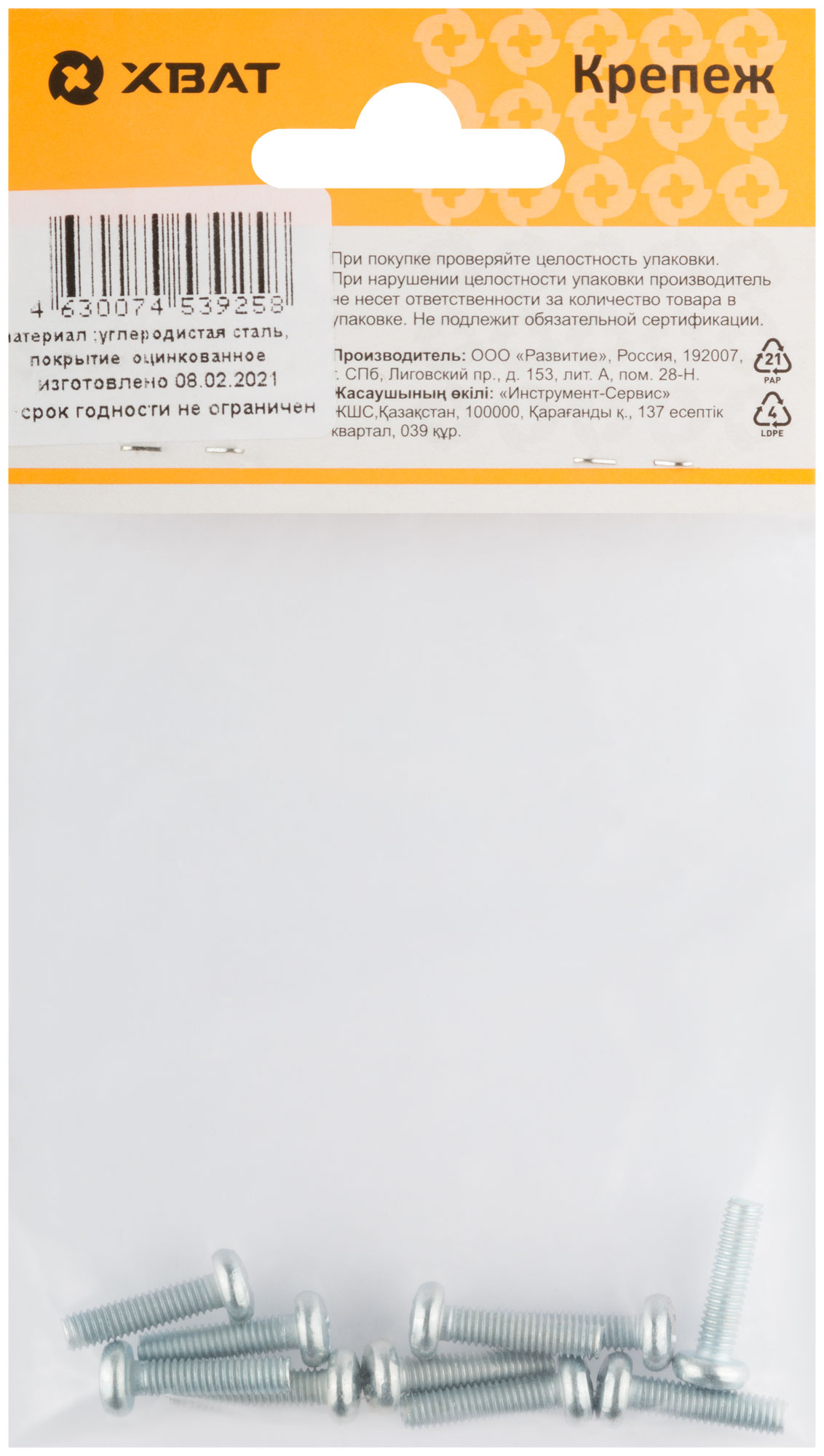 Купить Винт с полуцилиндрич. головкой с полной резьбой оцинков. DIN 7985 4х16 10 10.(фасовка) по доступной цене в Москве