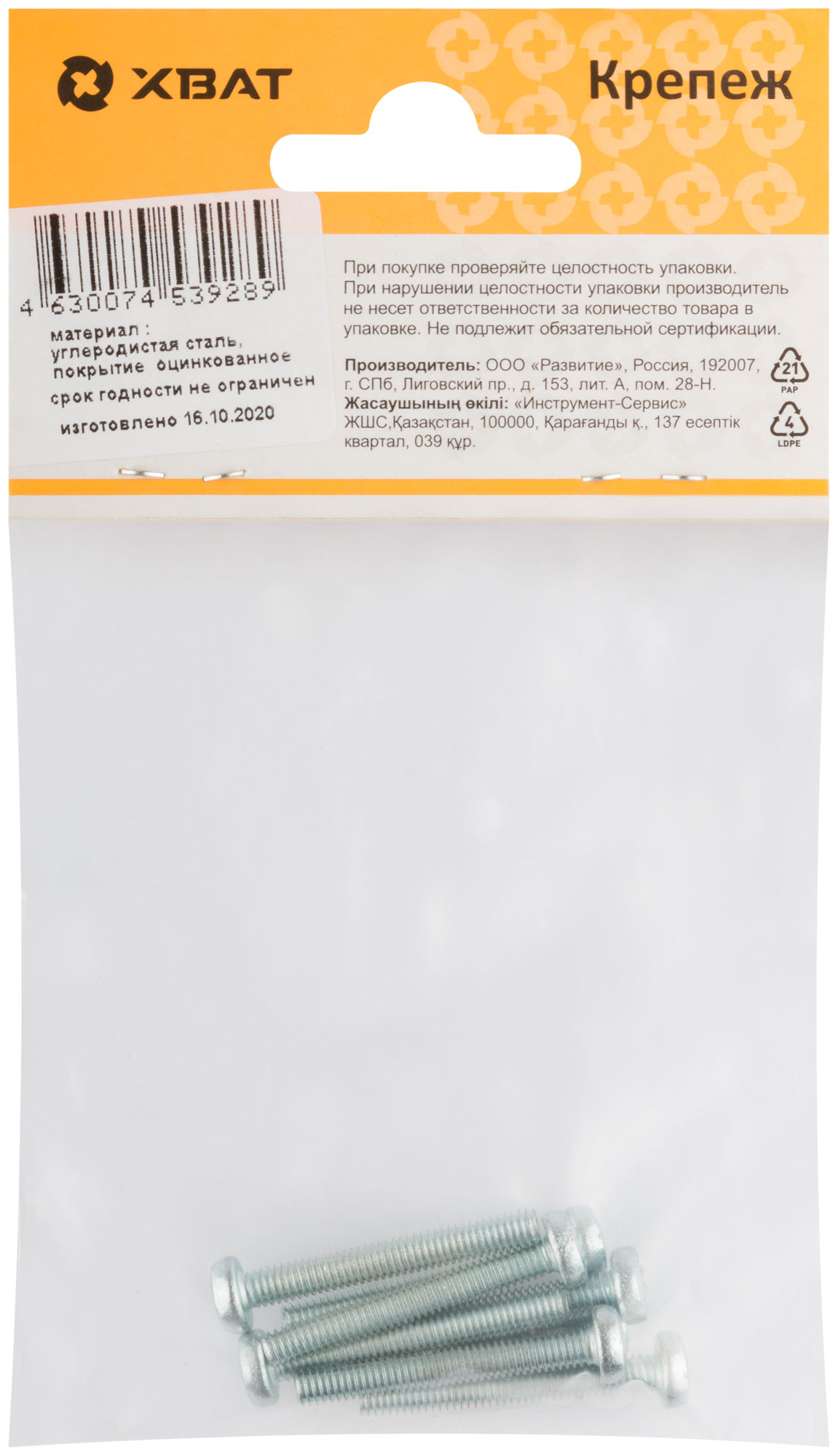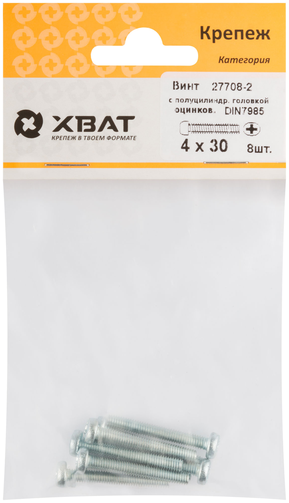 Купить Винт с полуцилиндрич. головкой с полной резьбой оцинков. DIN 7985 4х30 8 10.(фасовка) по доступной цене в Москве