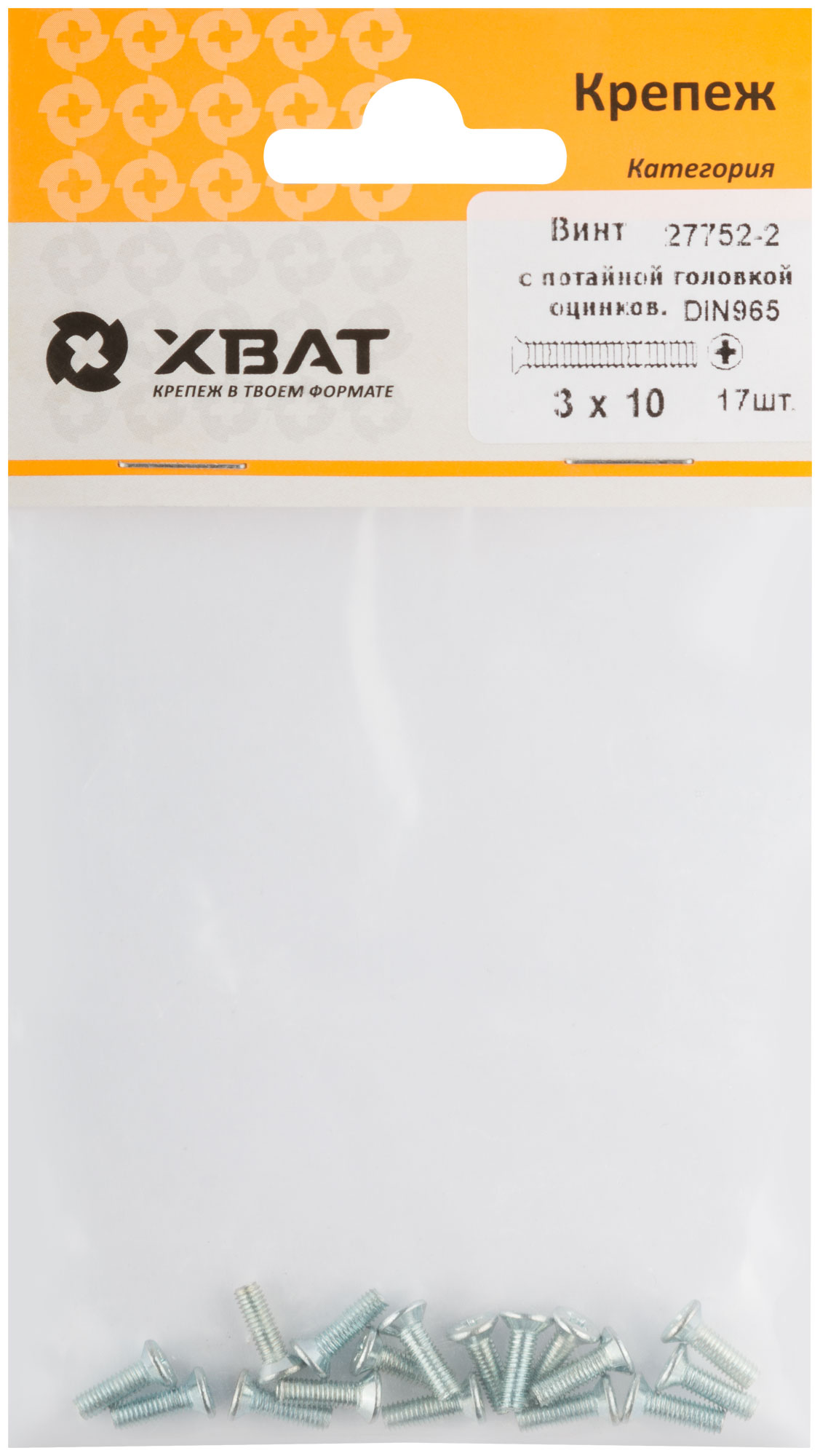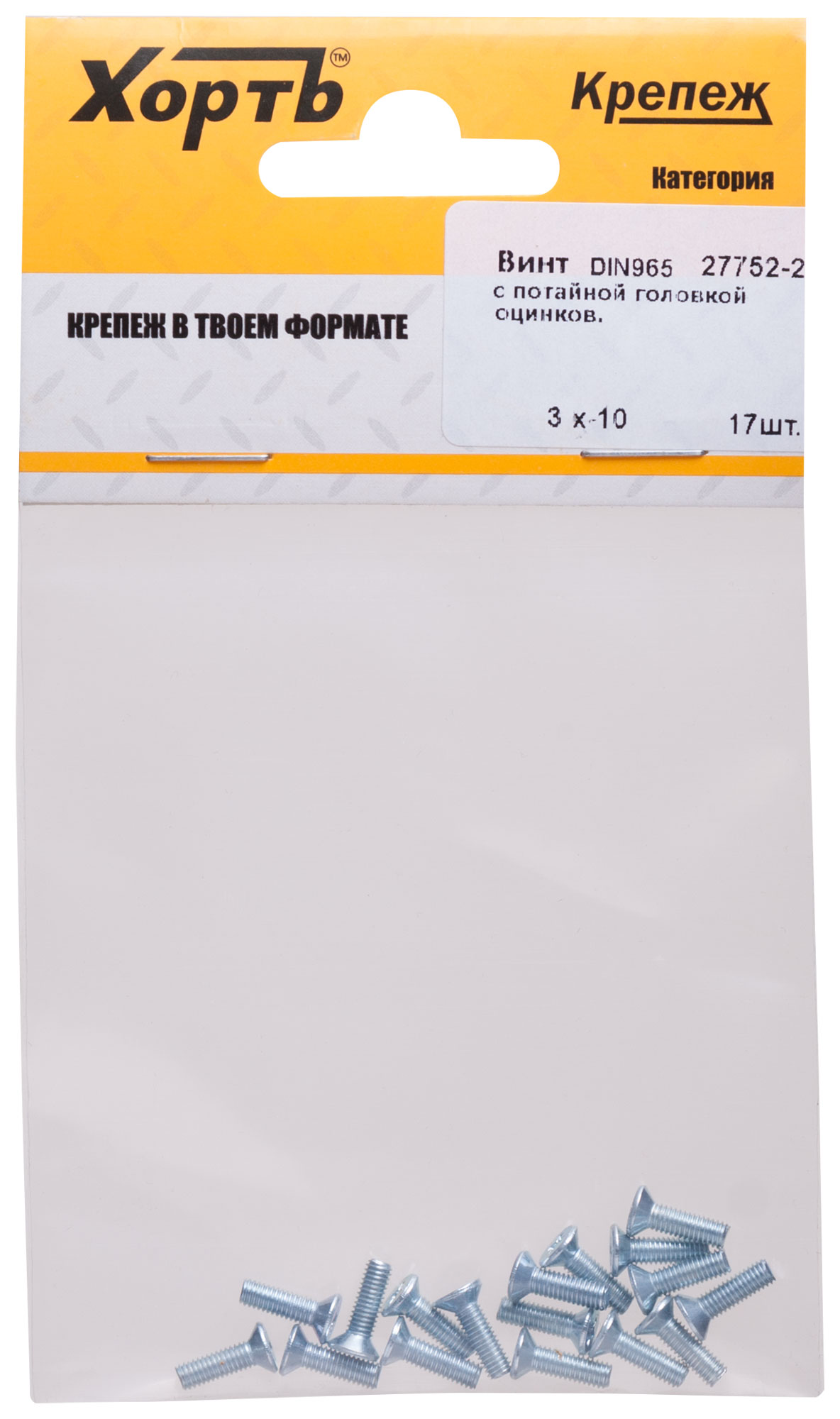Купить Винт с потайной головкой с полной резьбой оцинкованный DIN 965 3х10 17 10.(фасовка) по доступной цене в Москве