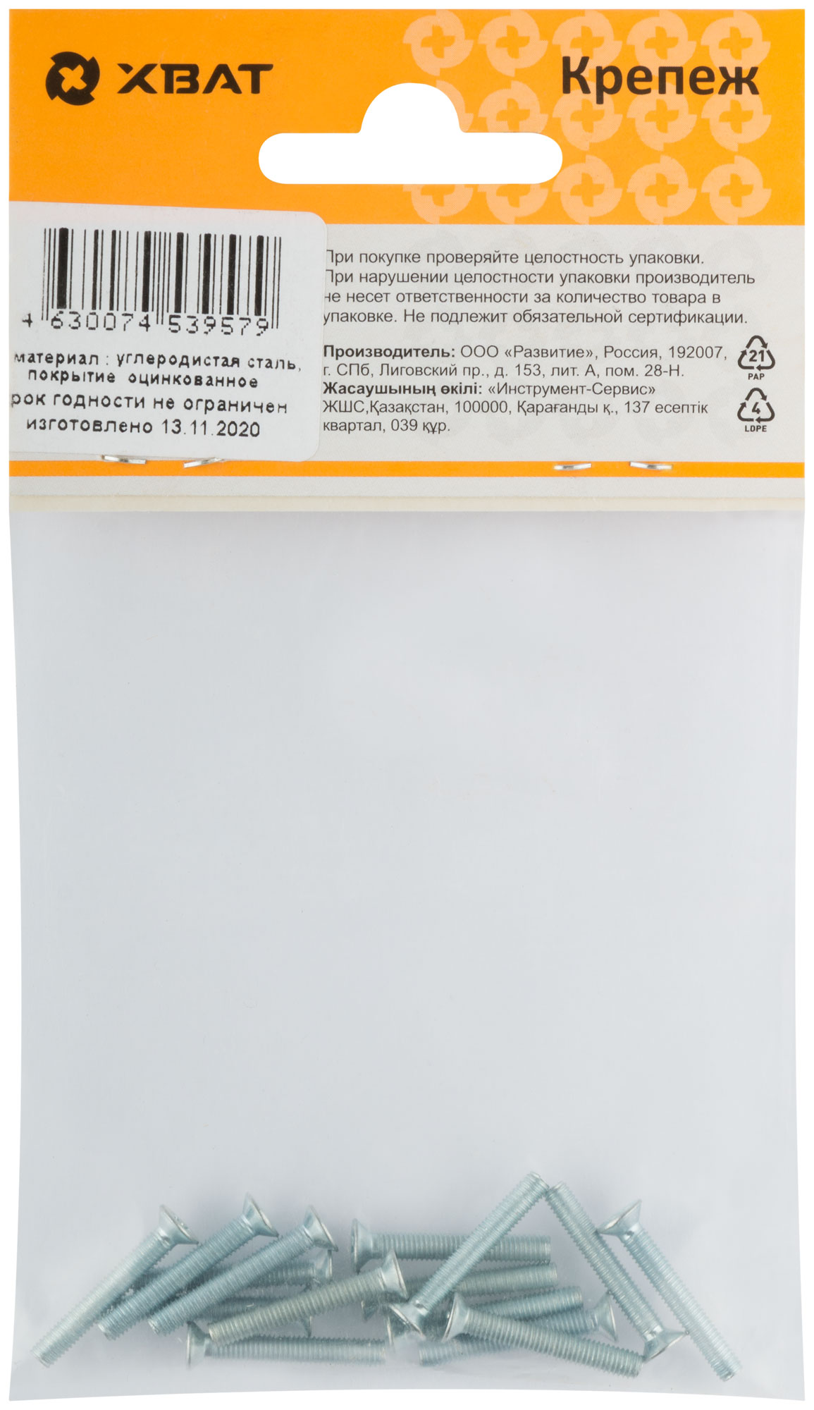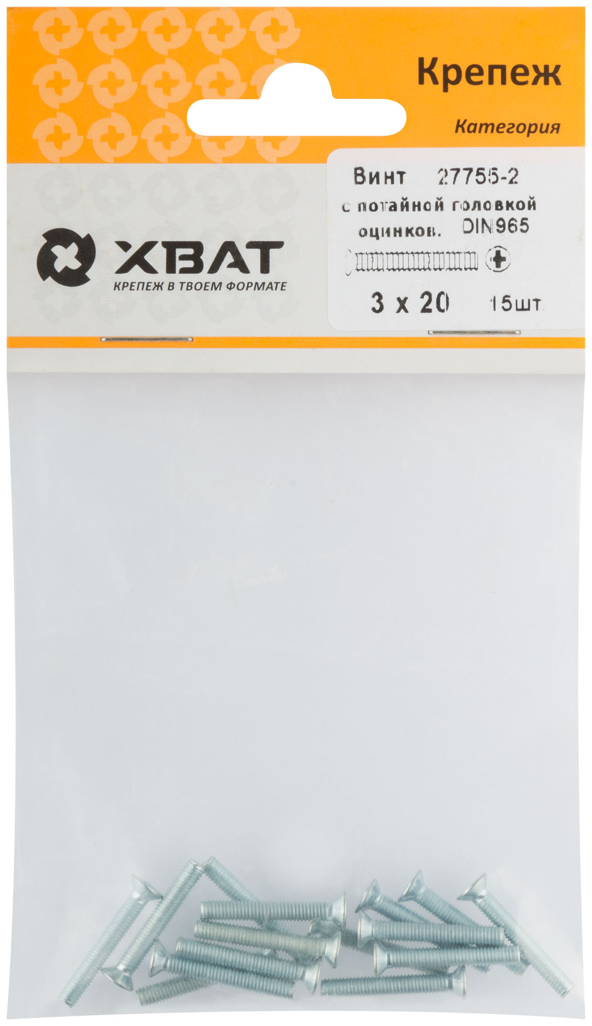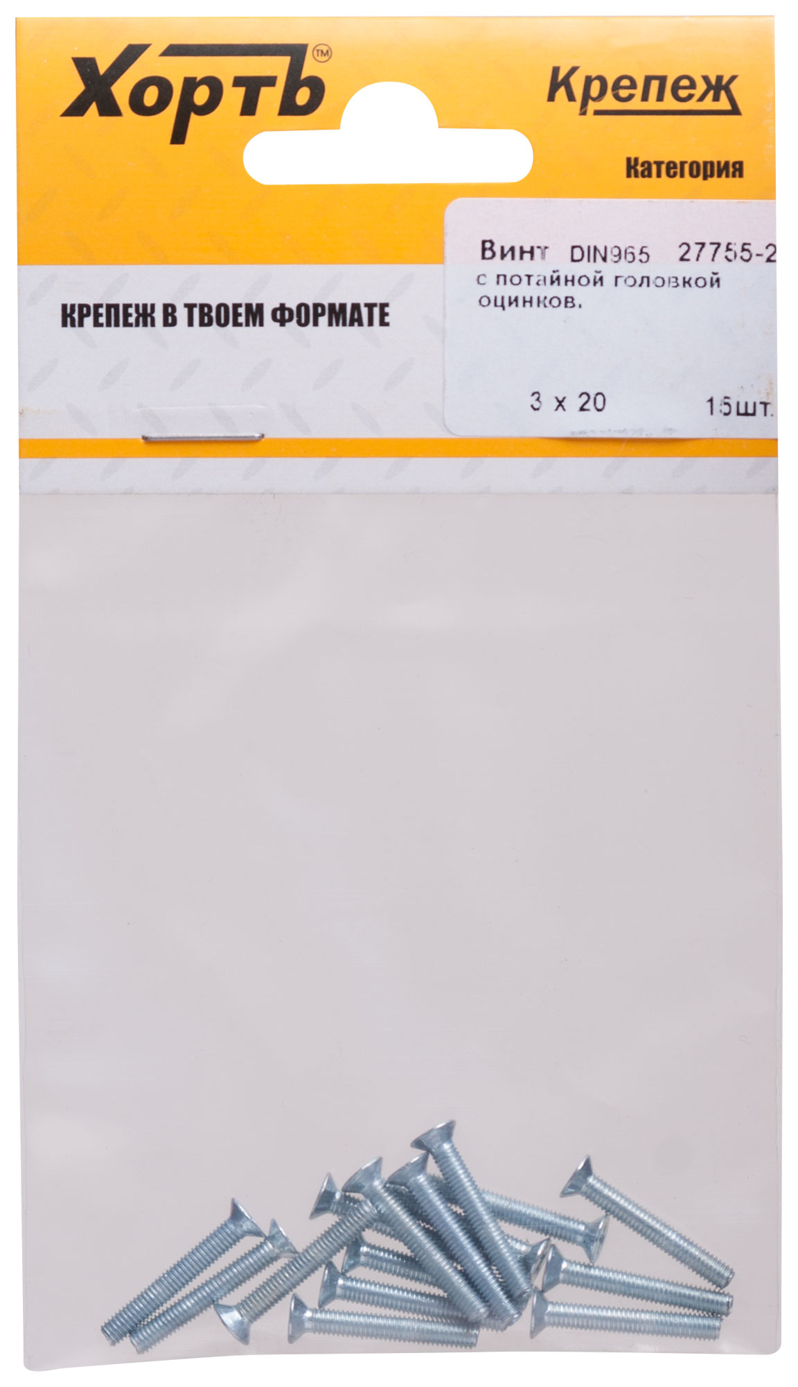 Купить Винт с потайной головкой с полной резьбой оцинкованный DIN 965 3х20 15 10.(фасовка) по доступной цене в Москве