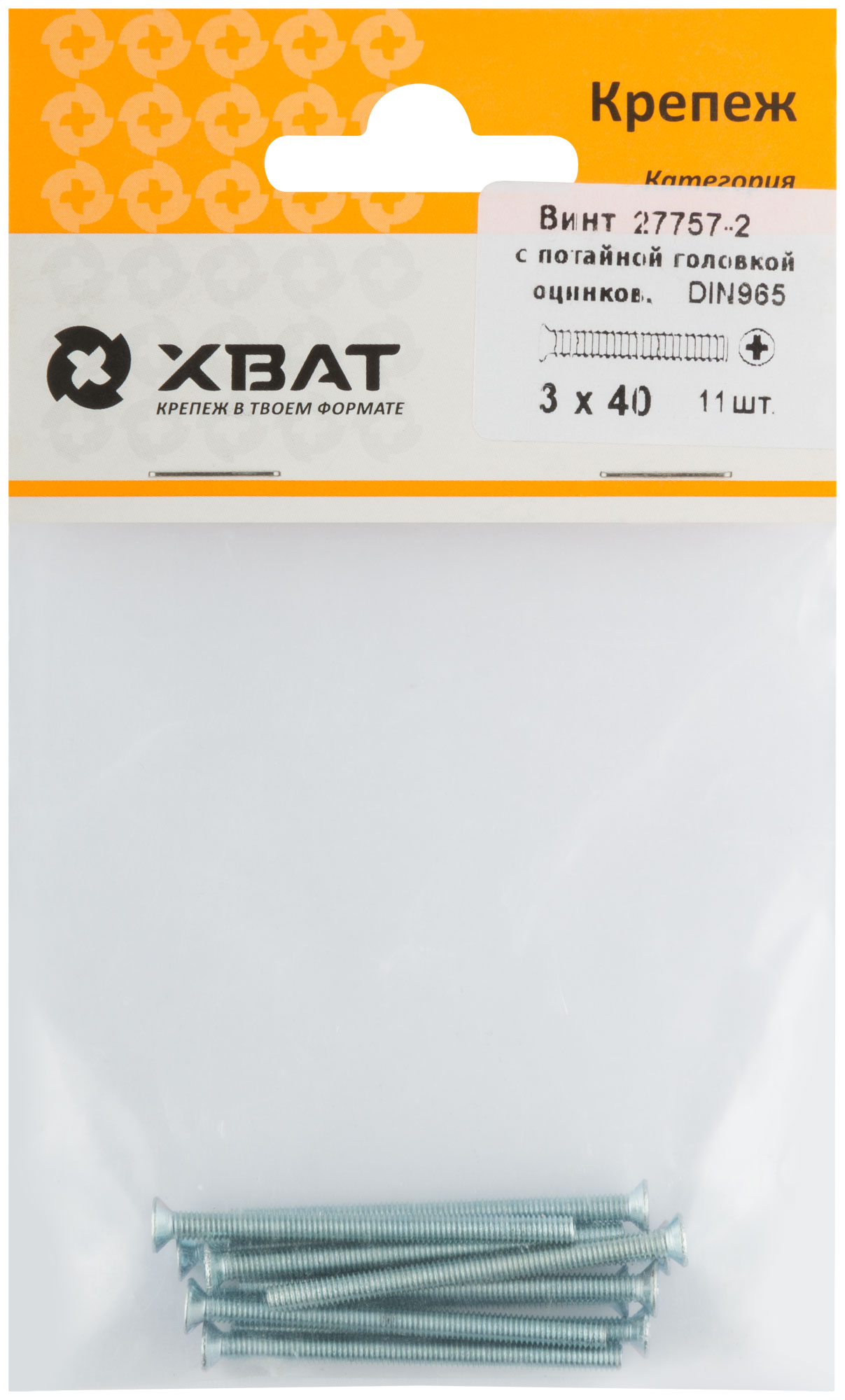 Купить Винт с потайной головкой с полной резьбой оцинкованный DIN 965 3х40 11 10.(фасовка) по доступной цене в Москве