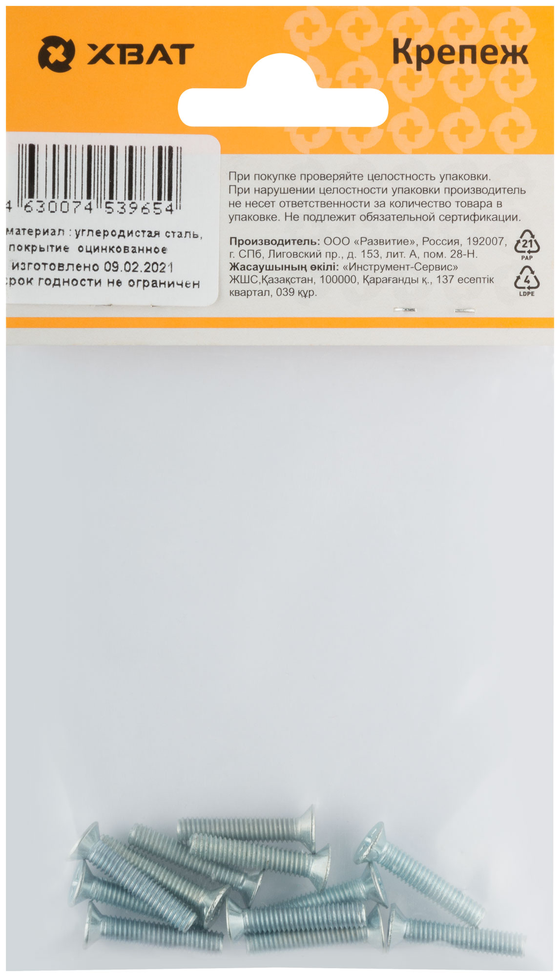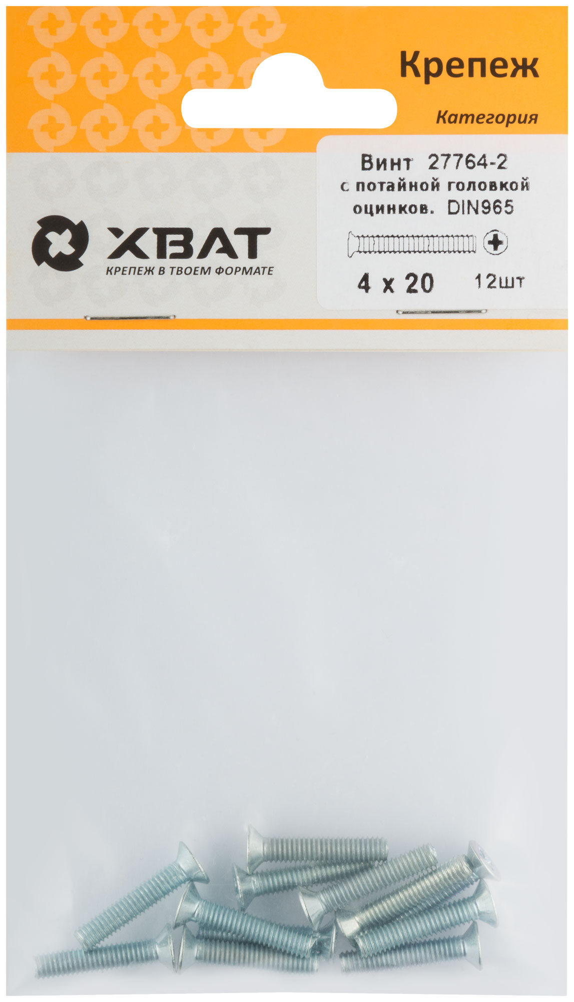 Купить Винт с потайной головкой с полной резьбой оцинкованный DIN 965 4х20 12 10.(фасовка) по доступной цене в Москве