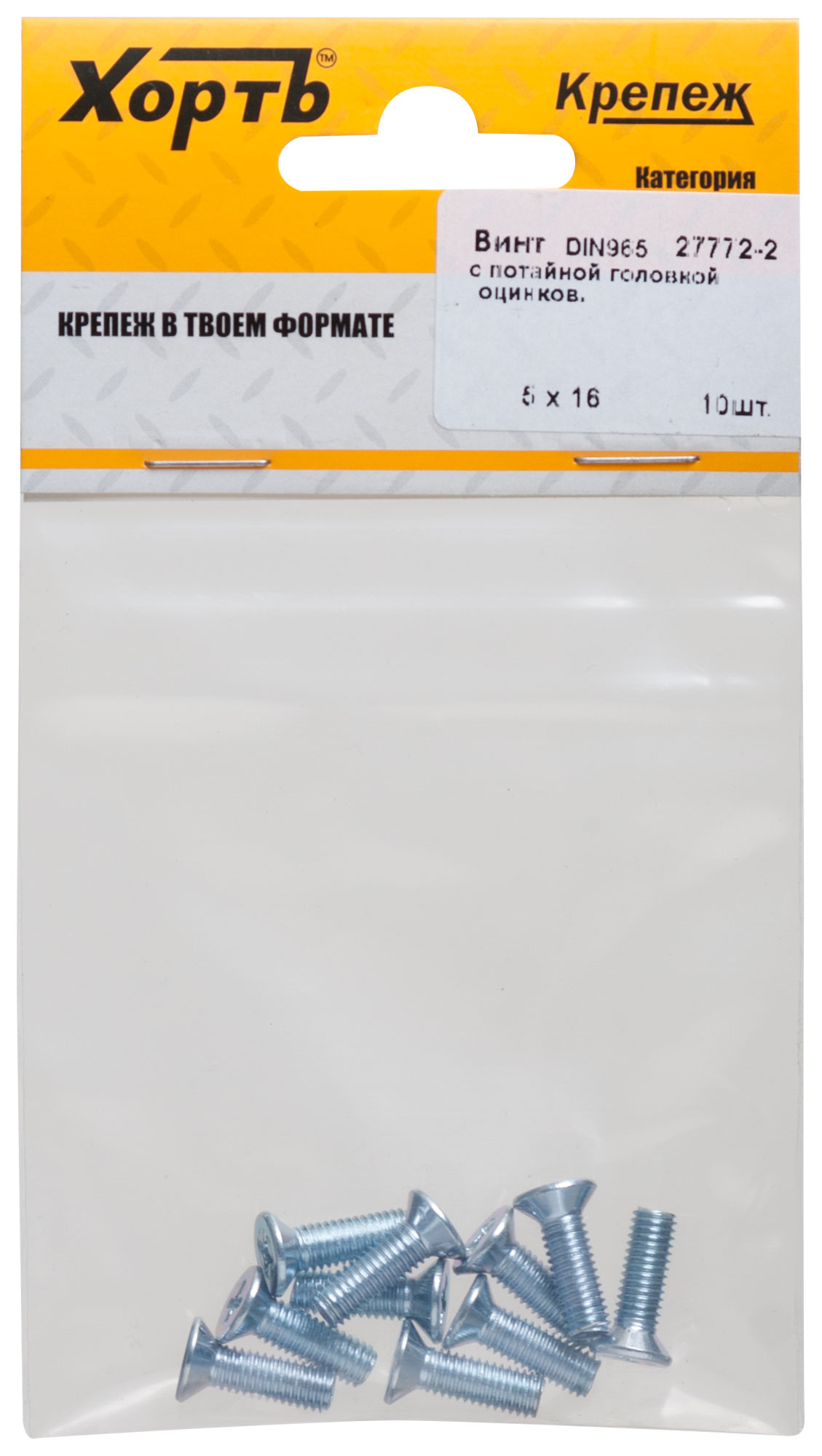 Купить Винт с потайной головкой с полной резьбой оцинкованный DIN 965 5х16 10 10.(фасовка) по доступной цене в Москве