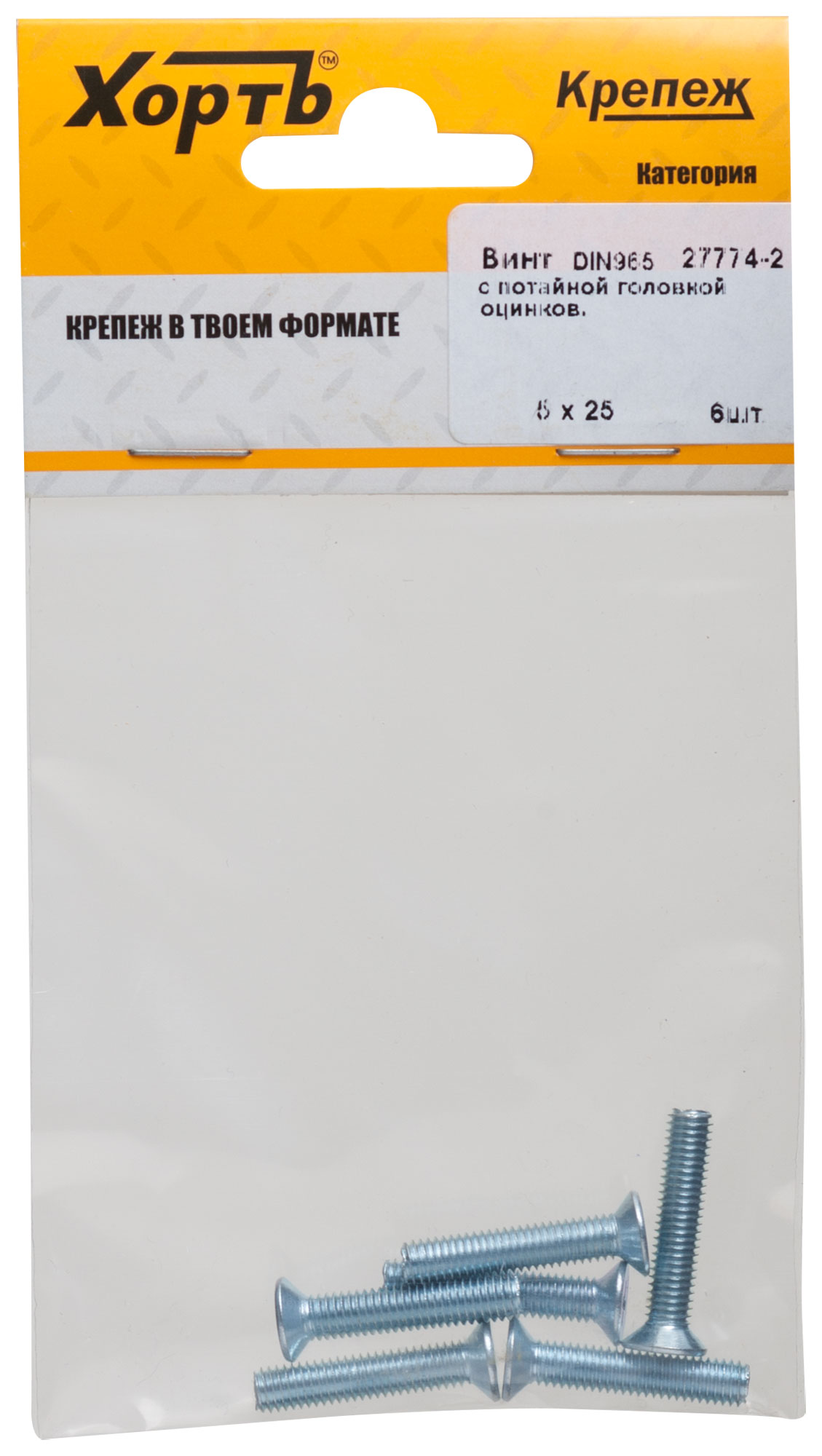 Купить Винт с потайной головкой с полной резьбой оцинкованный DIN 965 5х25 6 10.(фасовка) по доступной цене в Москве